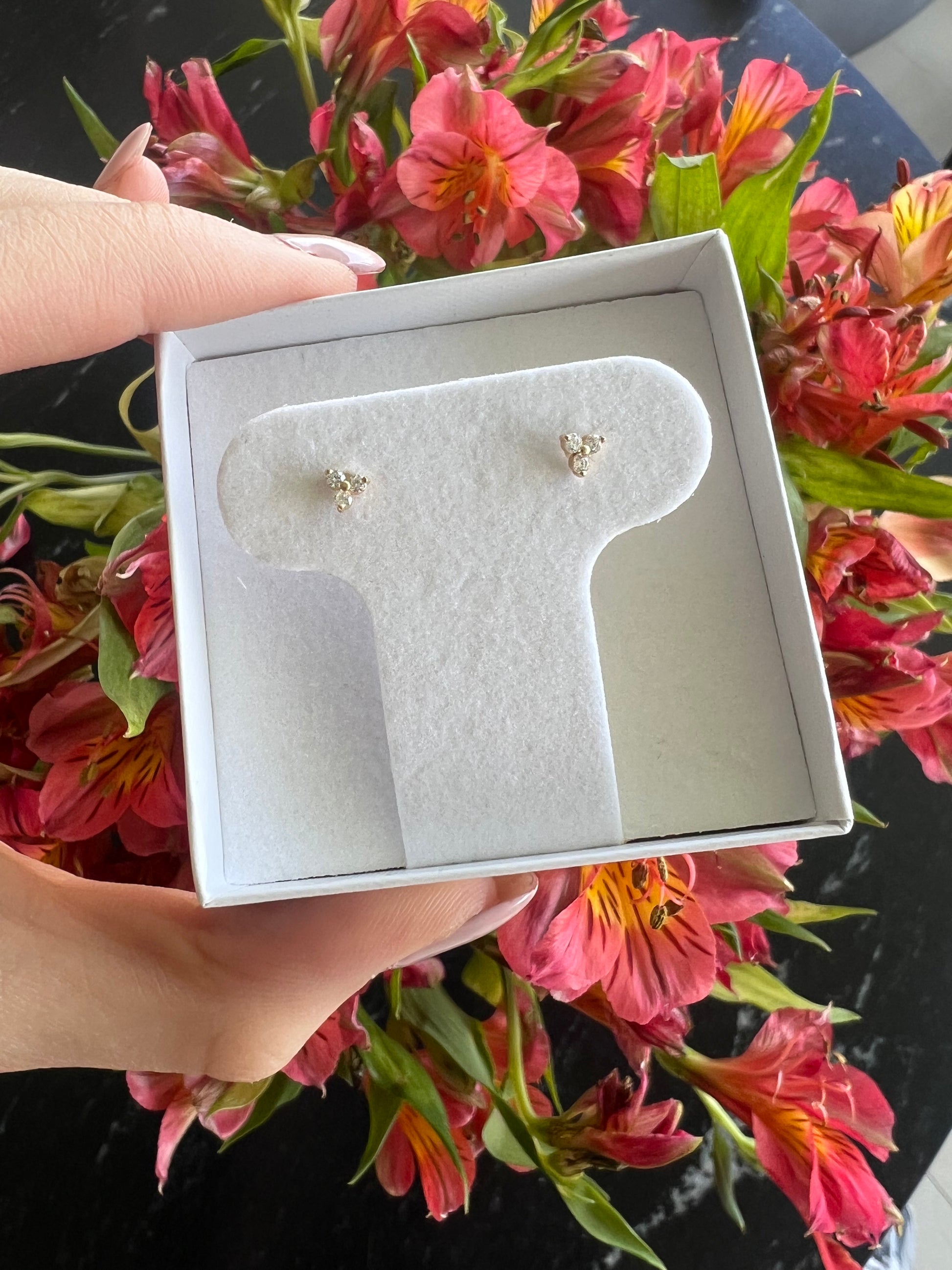 Aretes de oro de 14k de trinity de zirconia