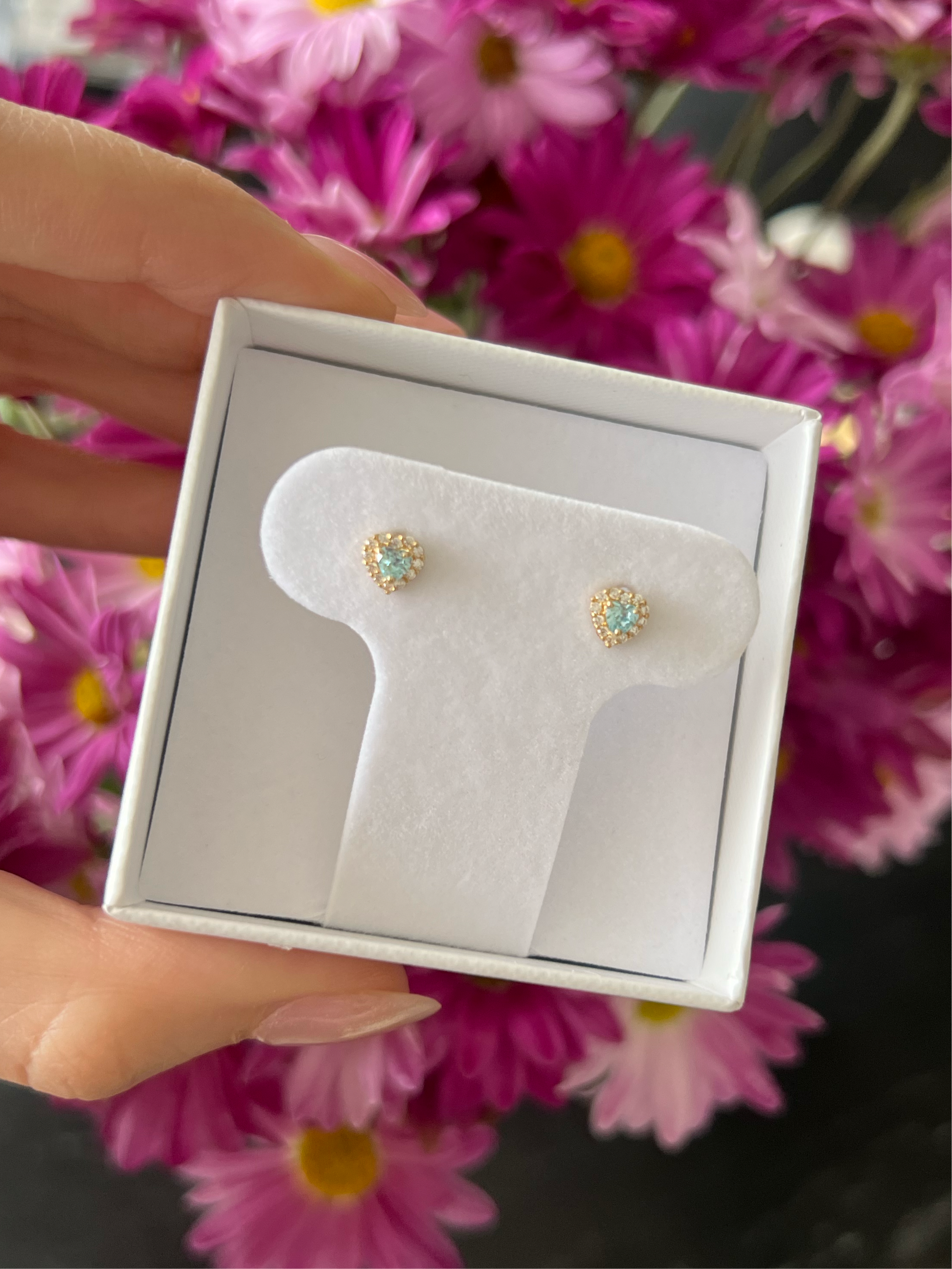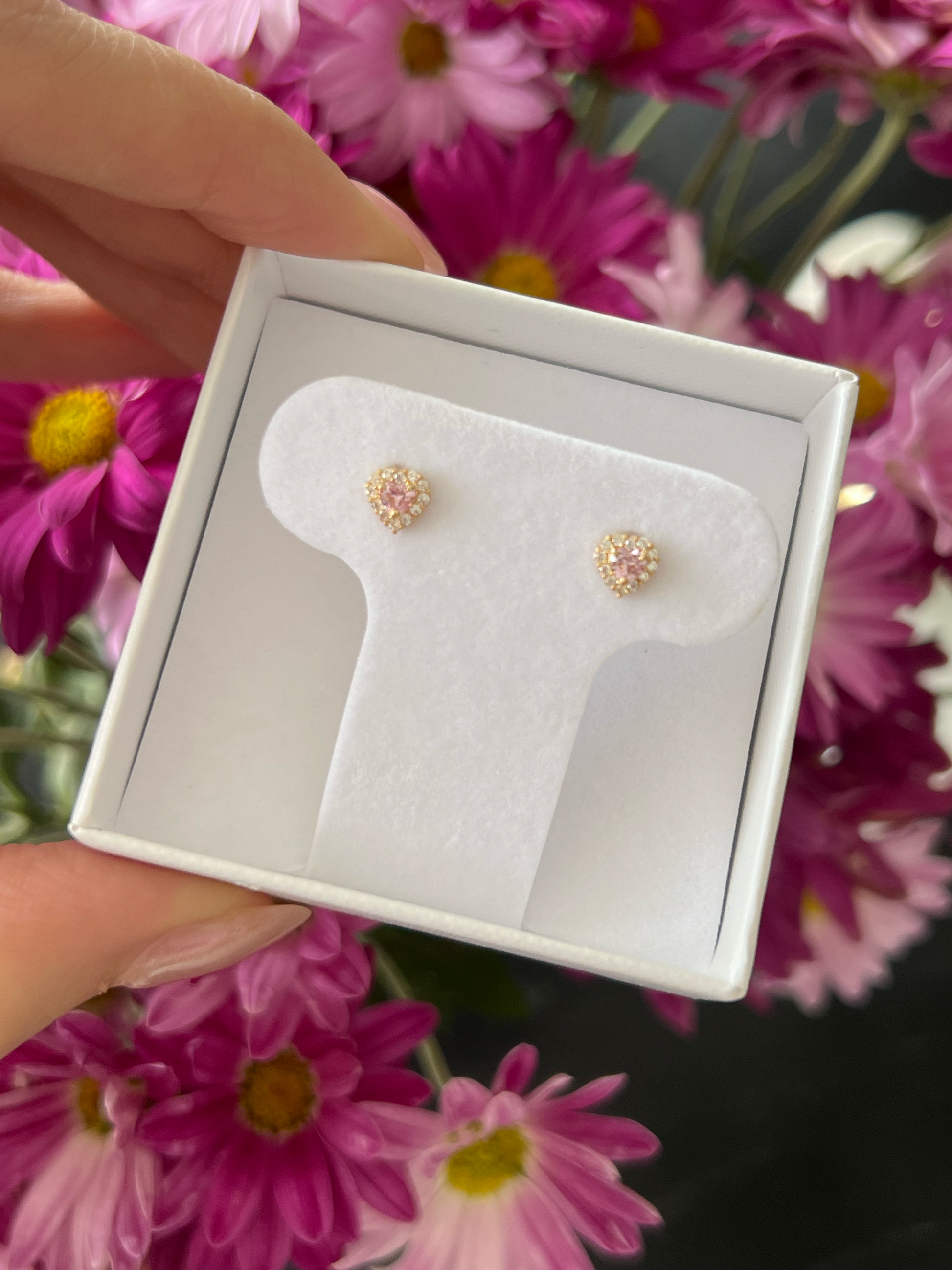 Broqueles en oro de 14k de corazón de zirconia y bisel de zirconia