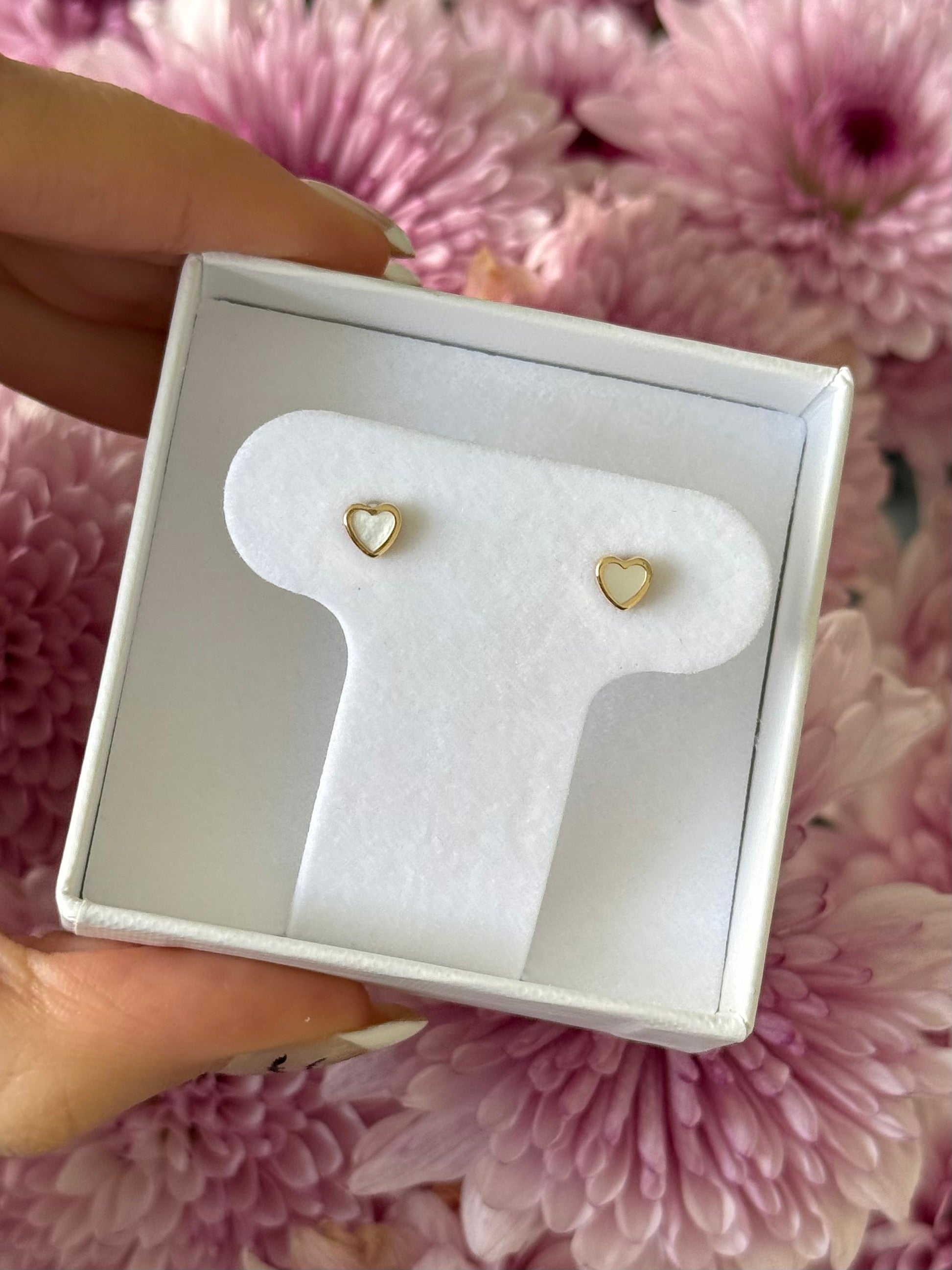 Aretes corazones madre perla