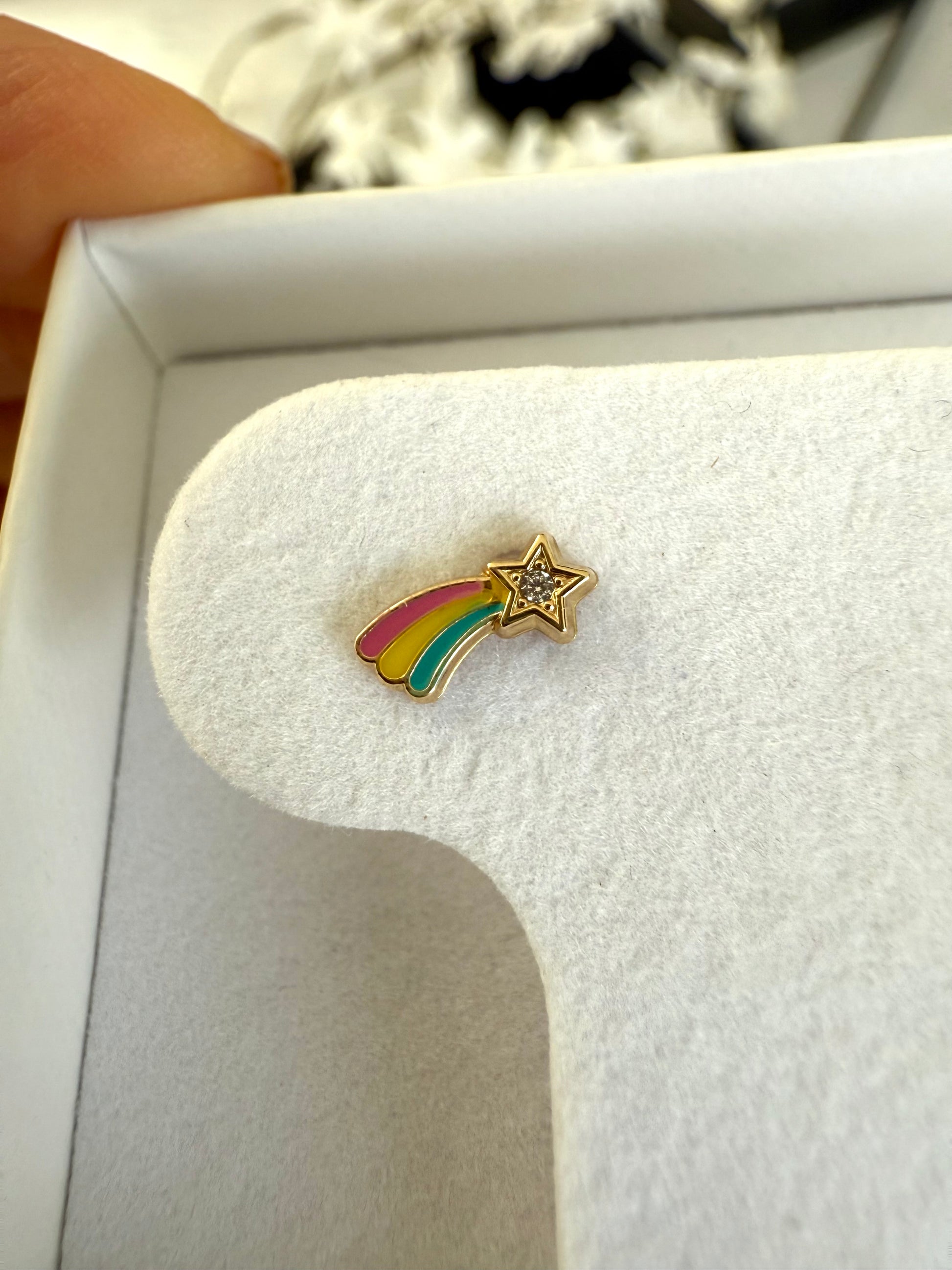 Broqueles en oro de 14k de estrella fugaz con una zirconia al centro y esmalte de colores