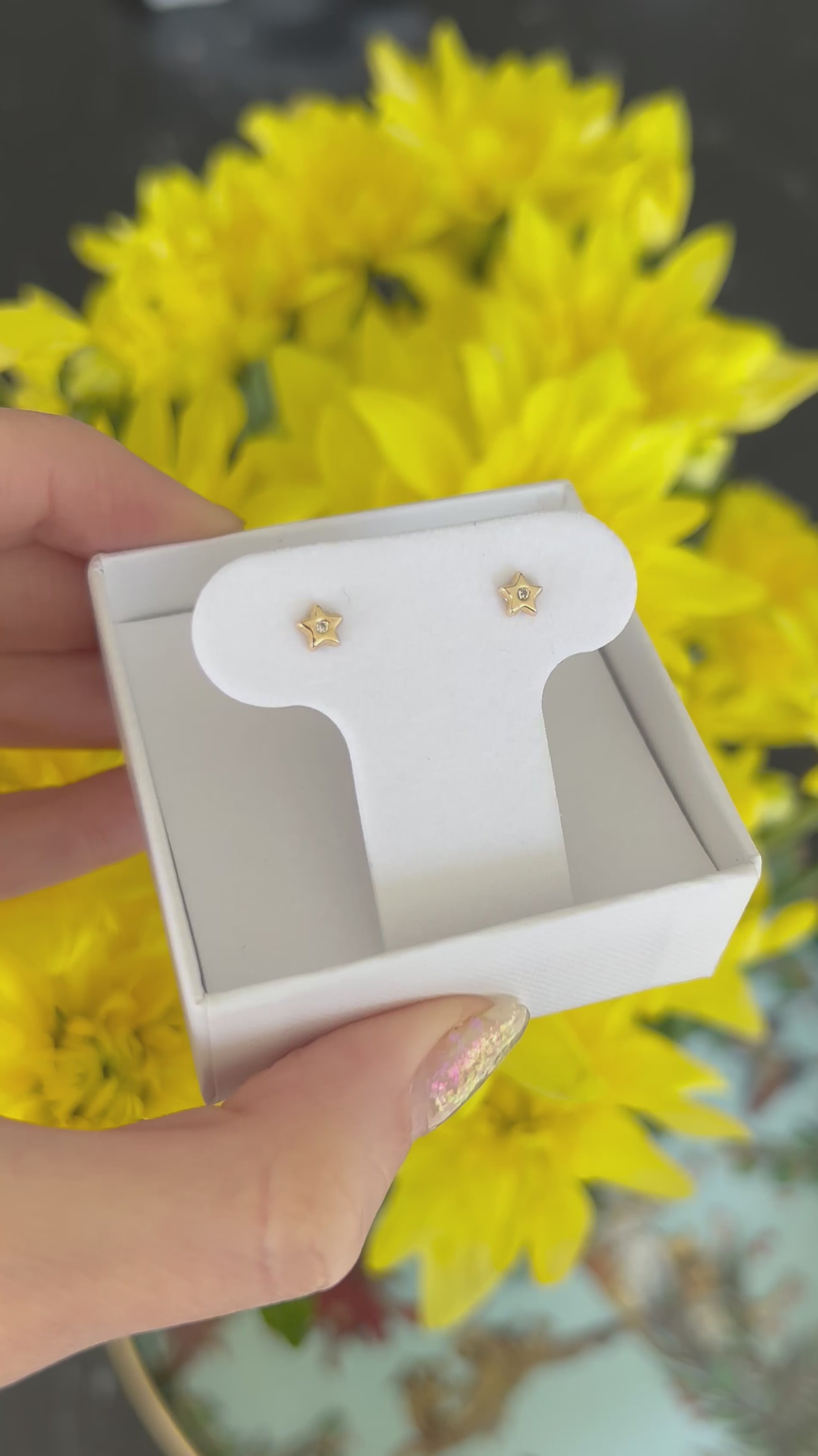 Broqueles en oro de 14k de estrella con zirconia al centro