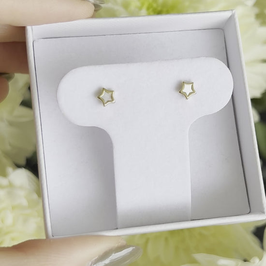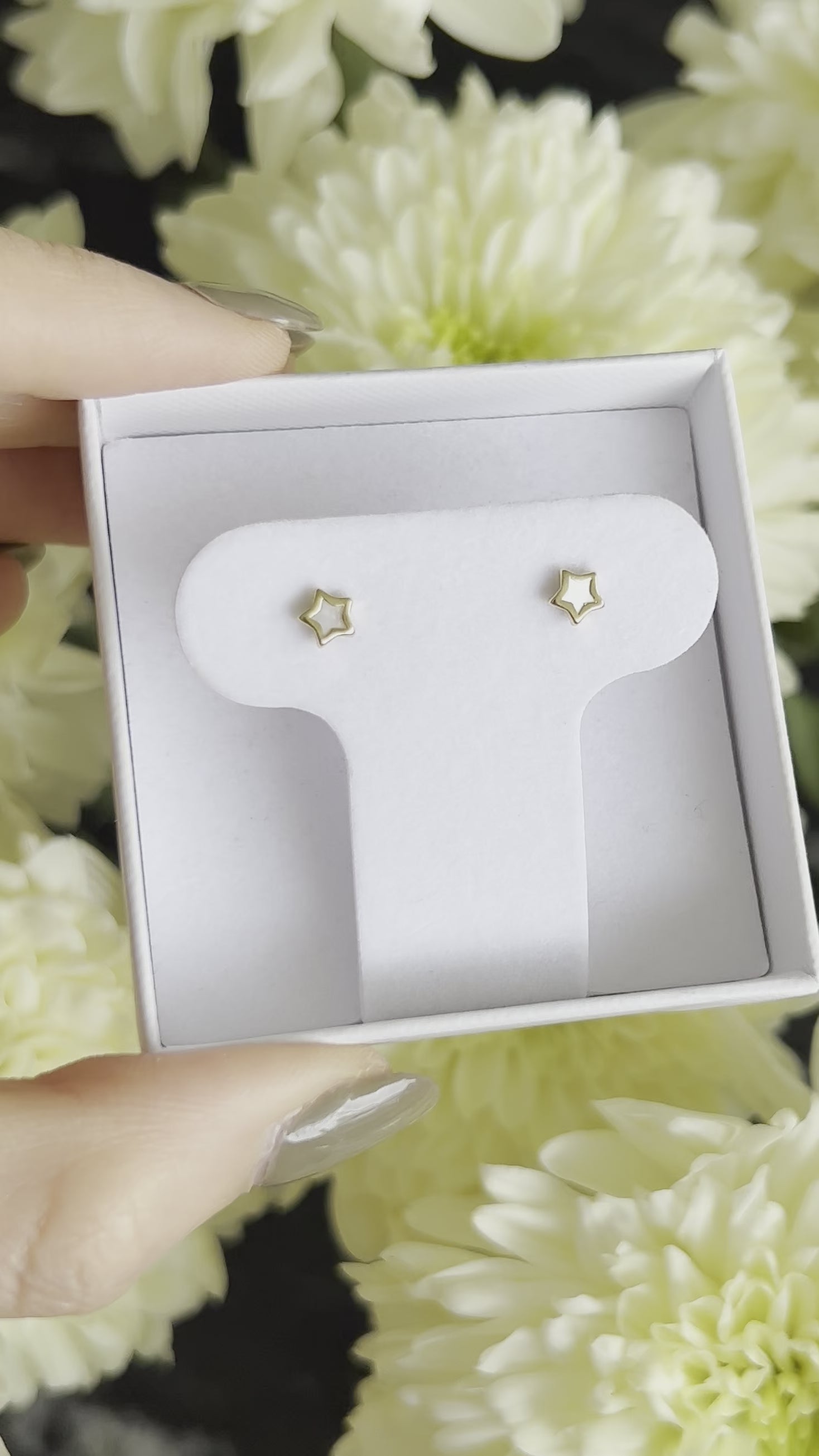 Broqueles en oro de 14k de Estrellas mini con madre perla