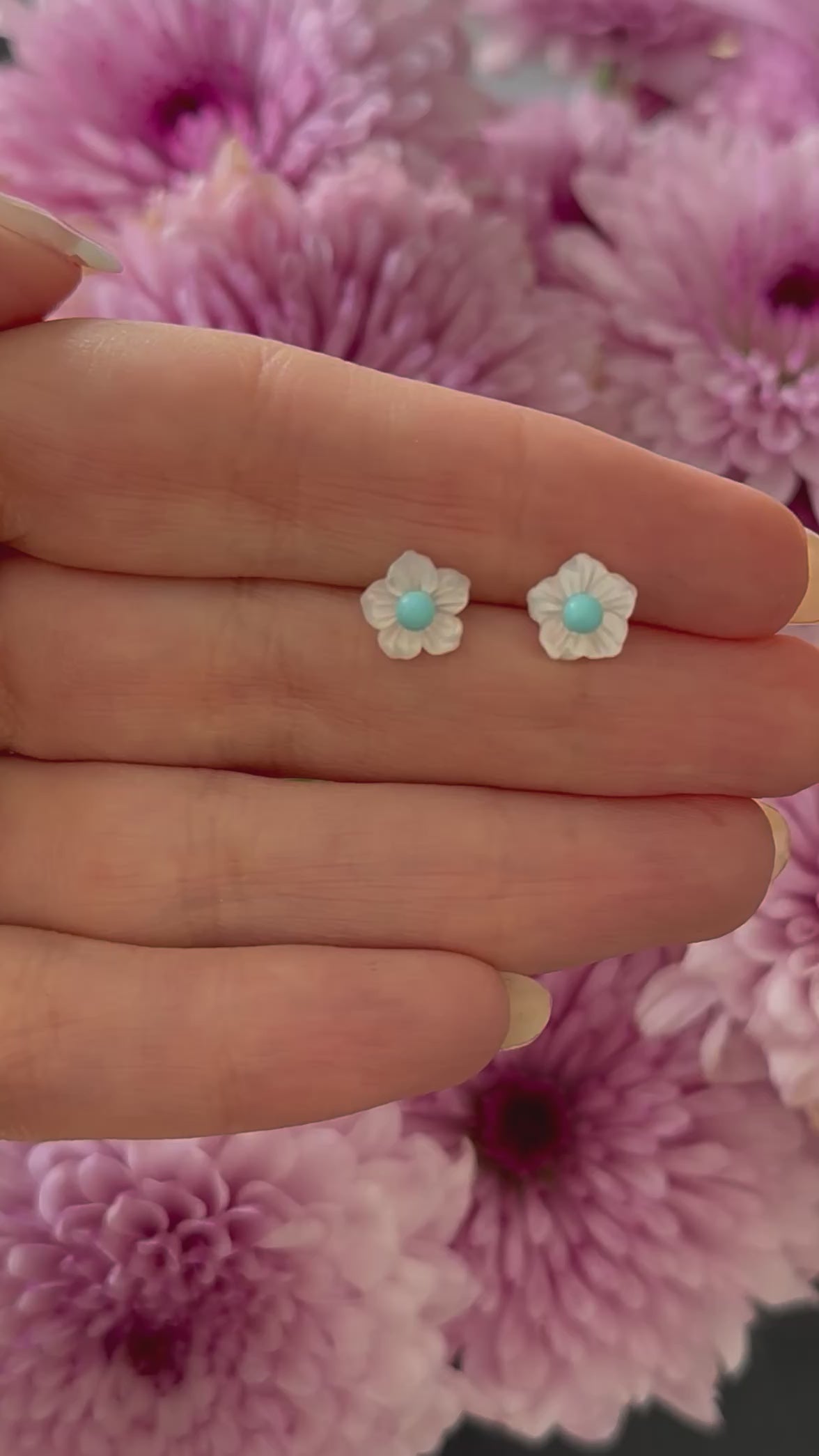 Aretes flor madre perla con turquesa
