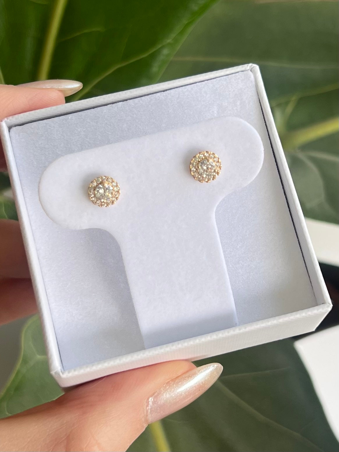 Broqueles en oro de 14k circulares con zirconia grande al centro y bisel de zirconias