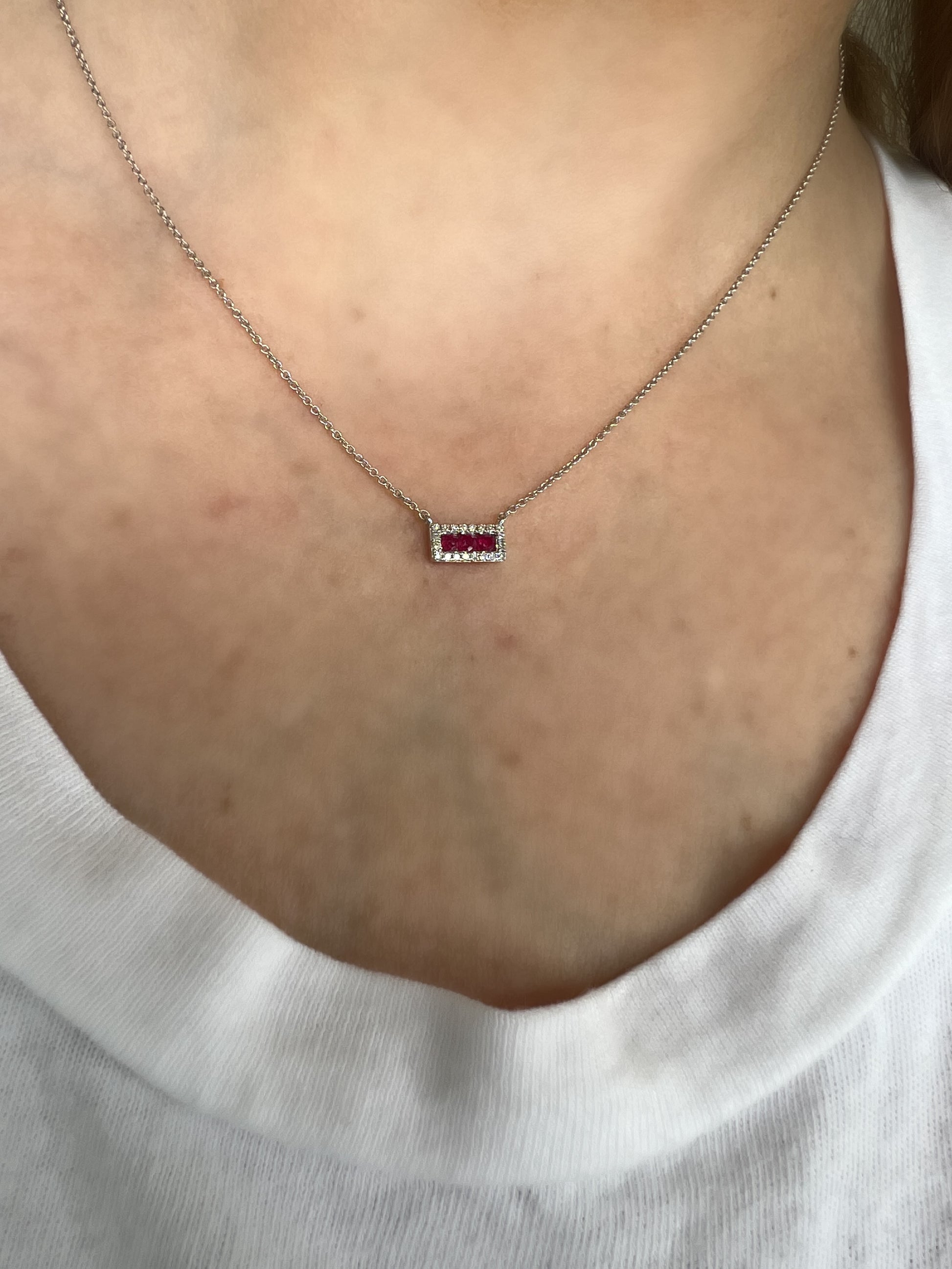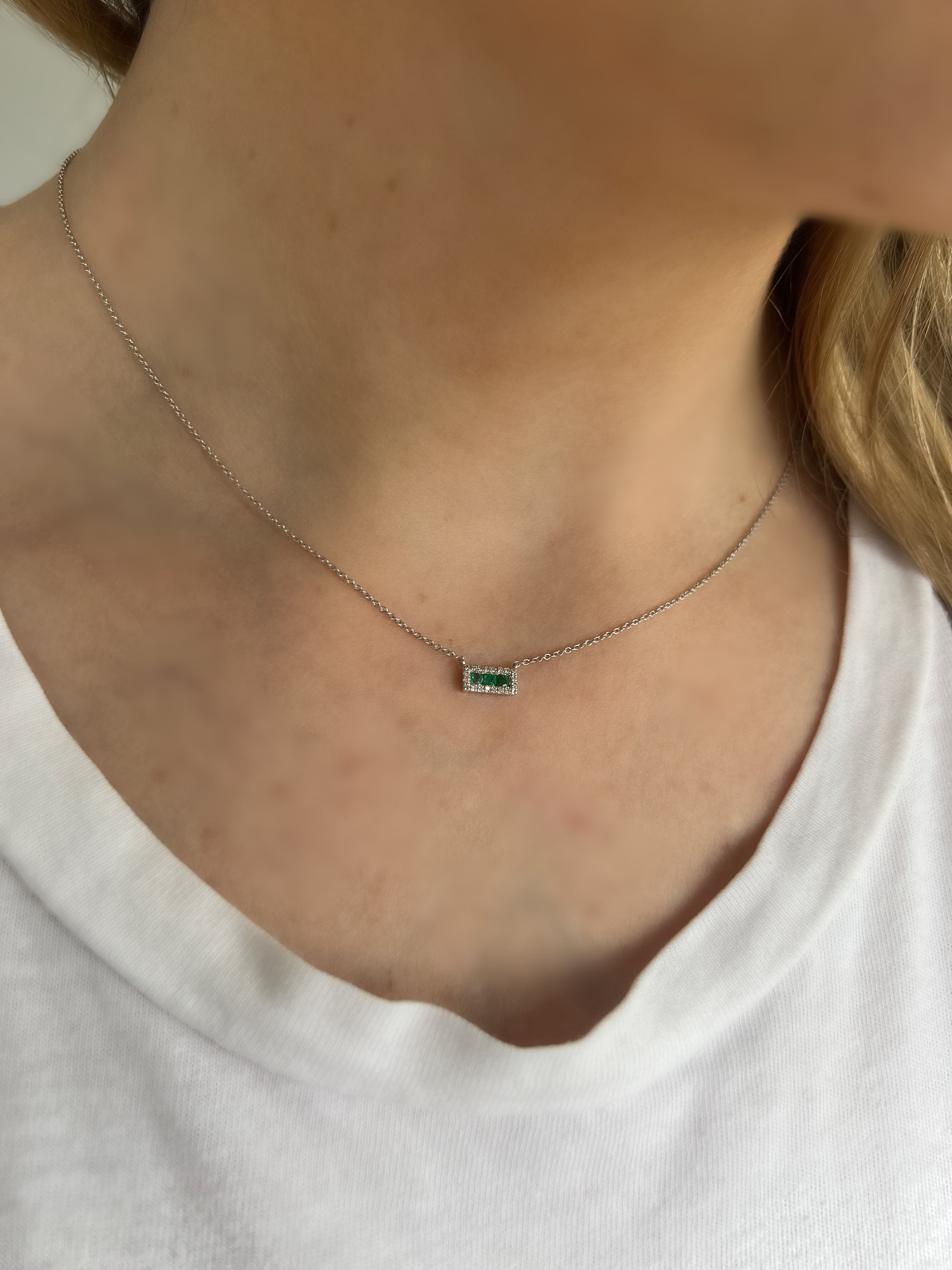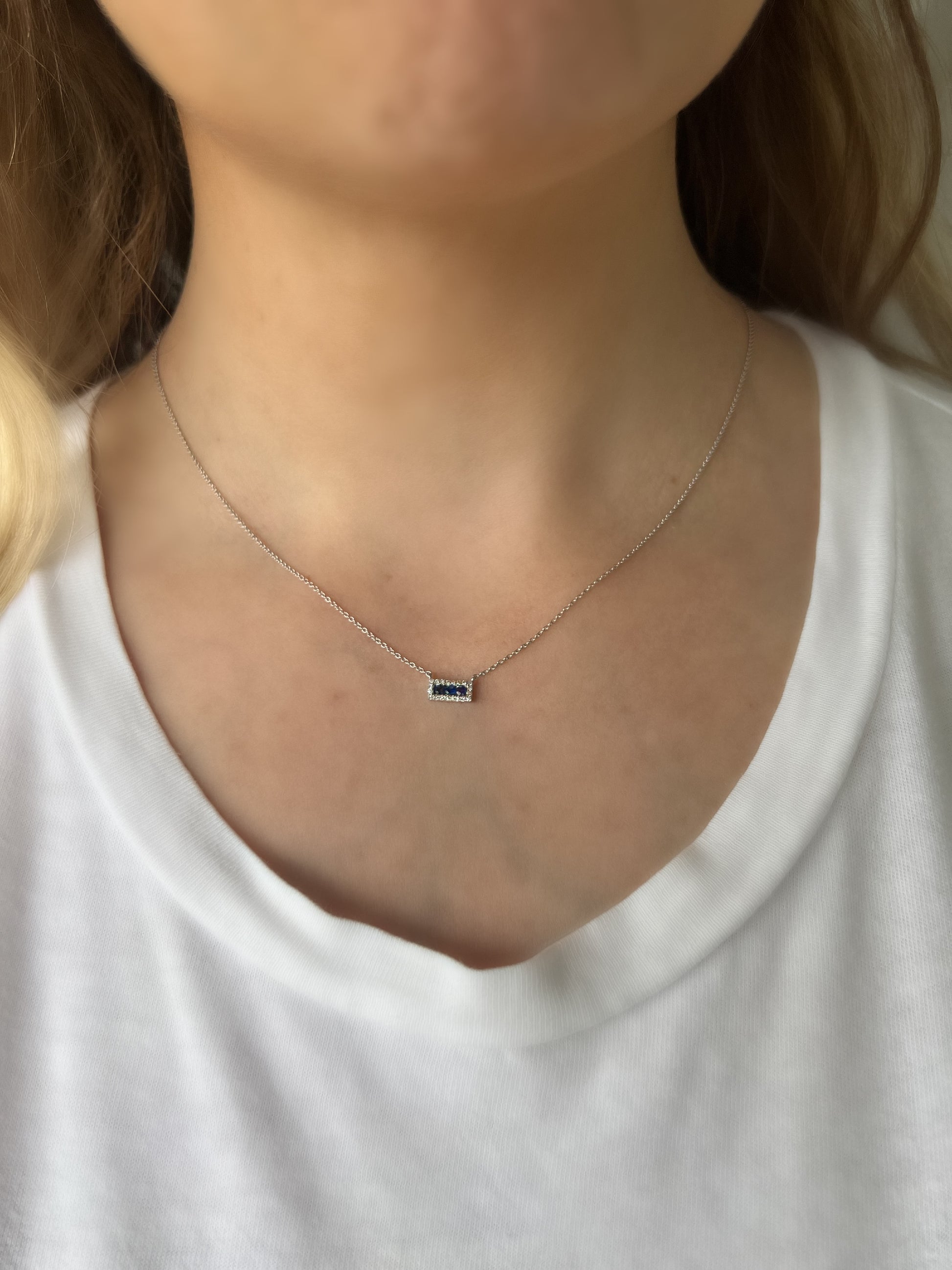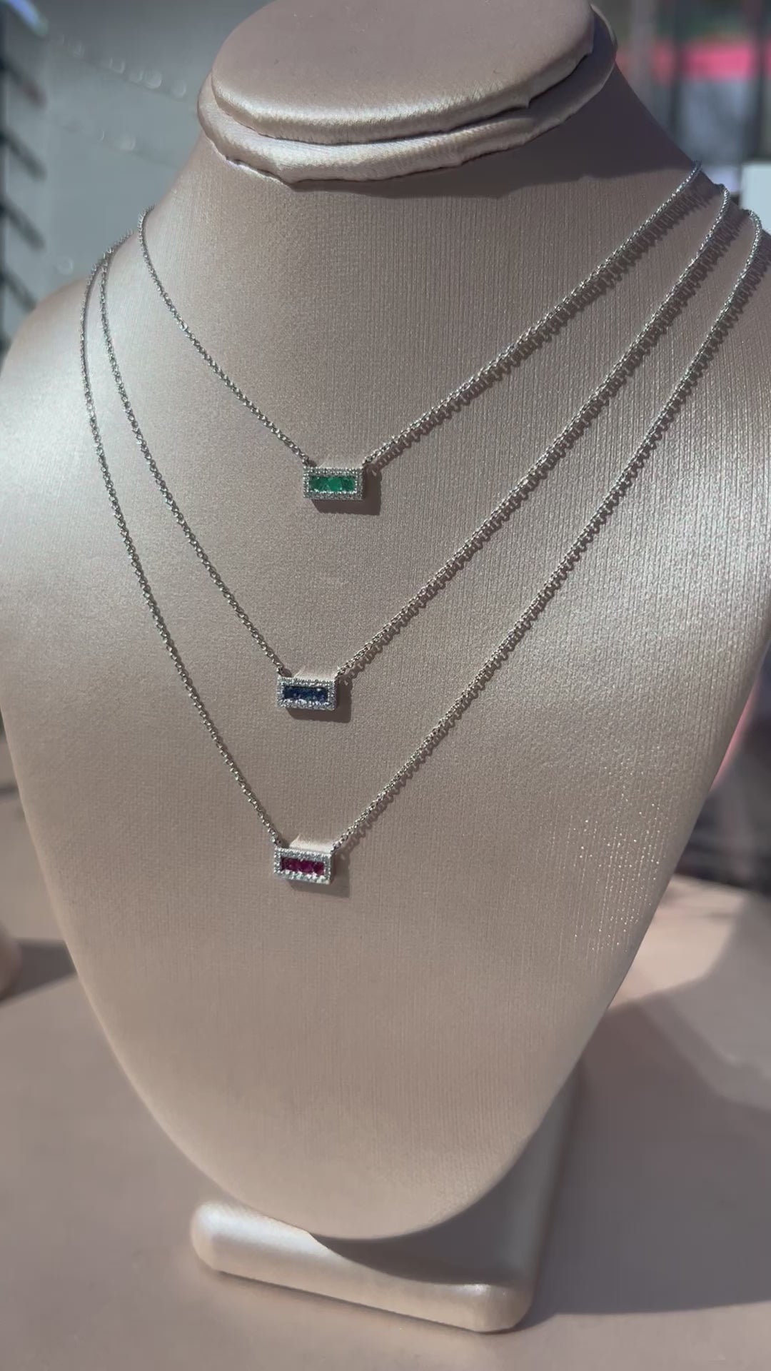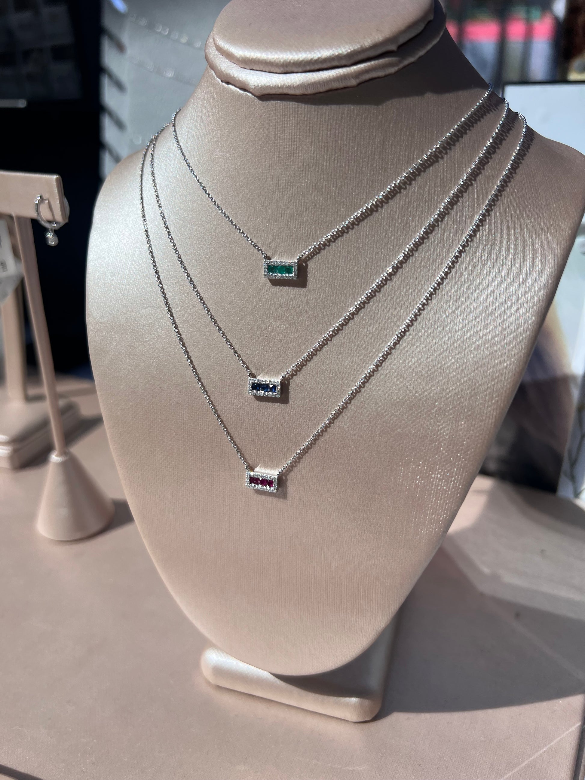 Collar en oro blanco de 14k con zafiros, rubíes o esmeraldas y diamantes