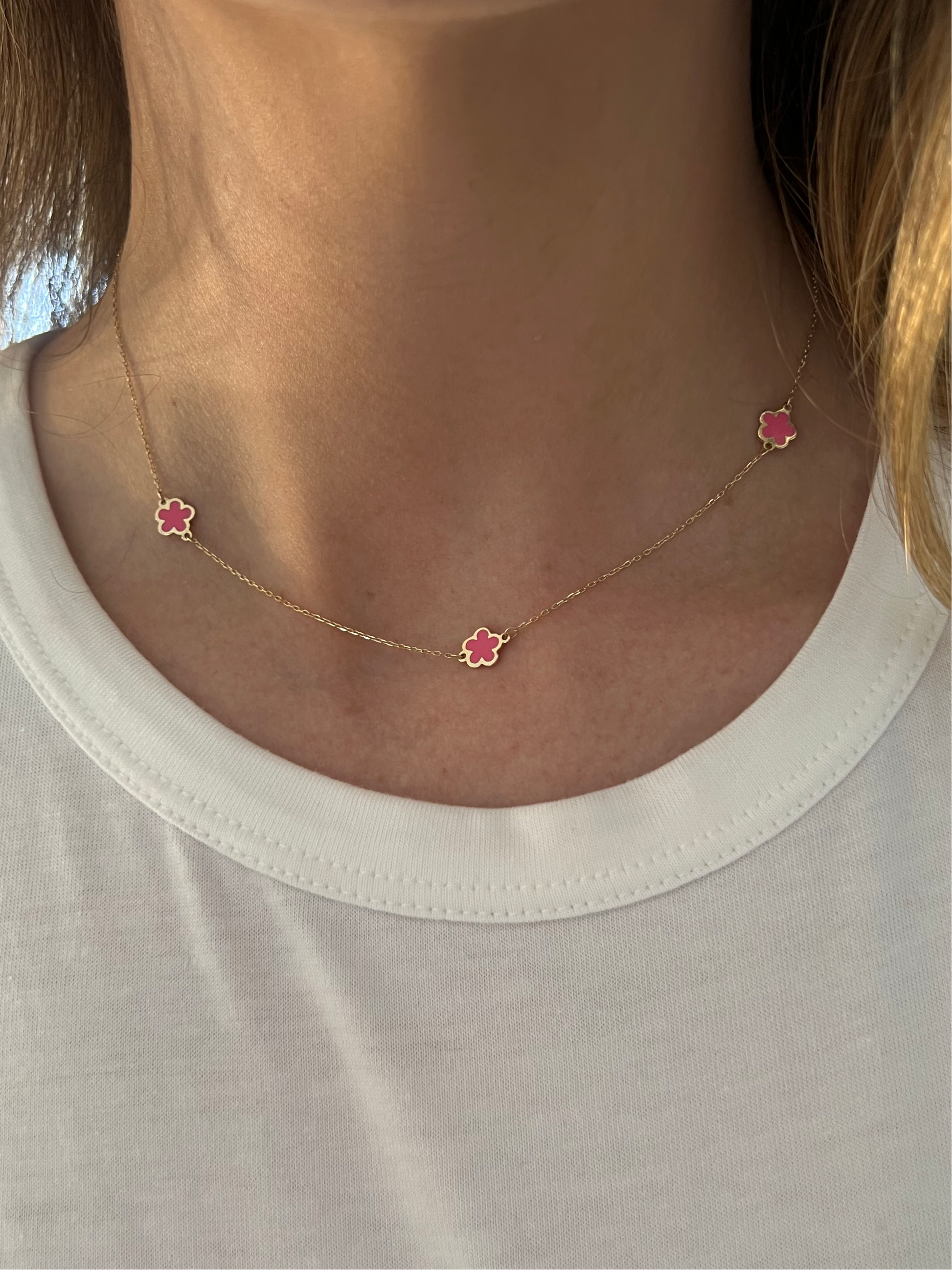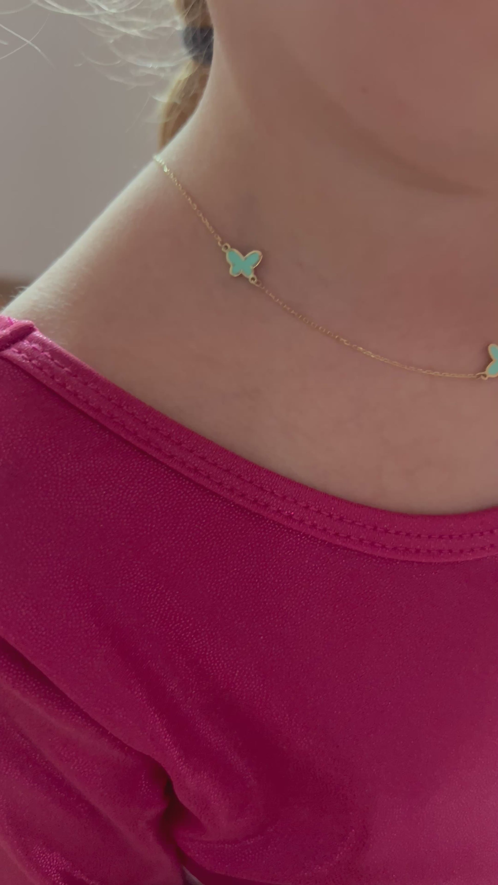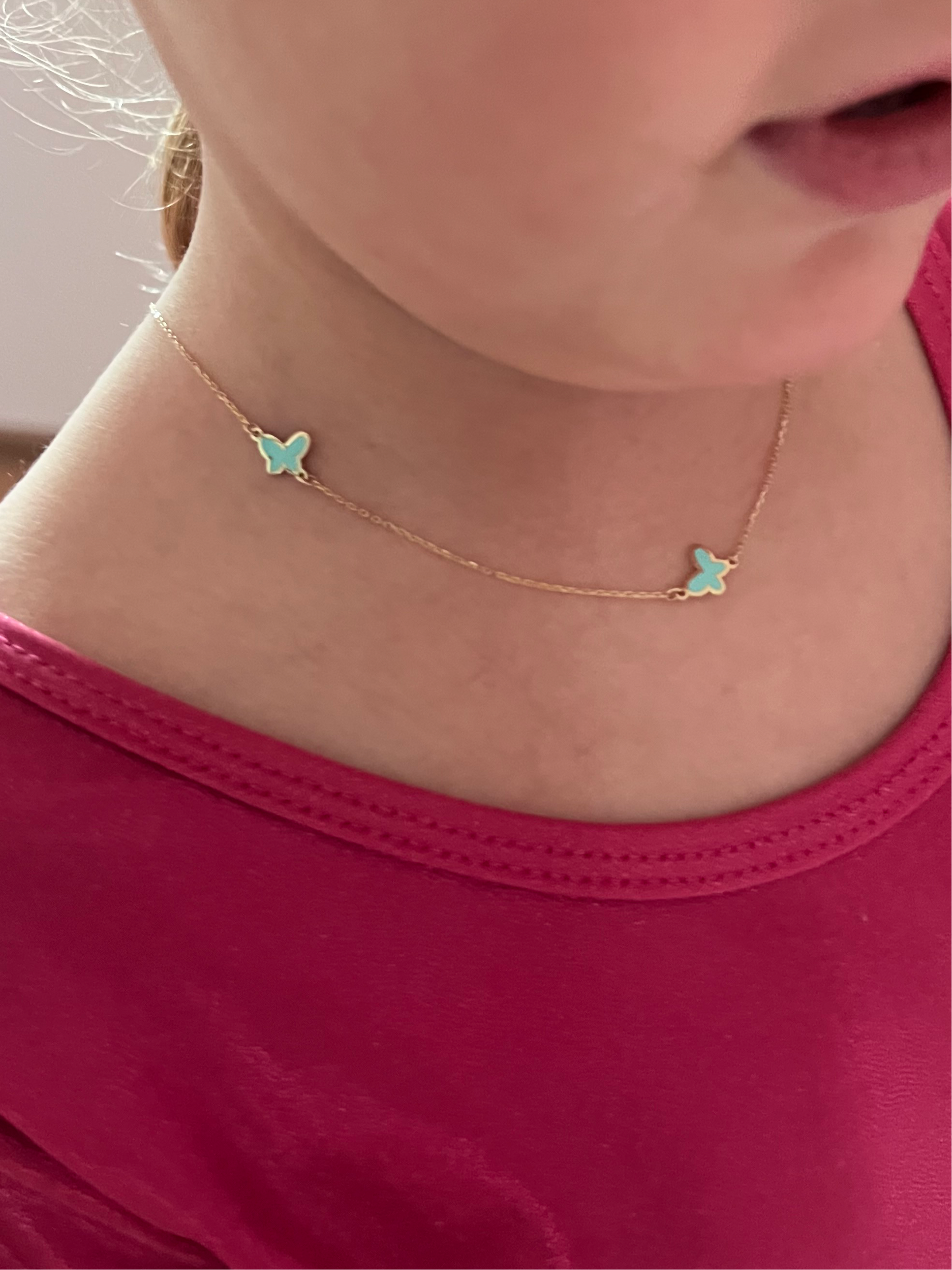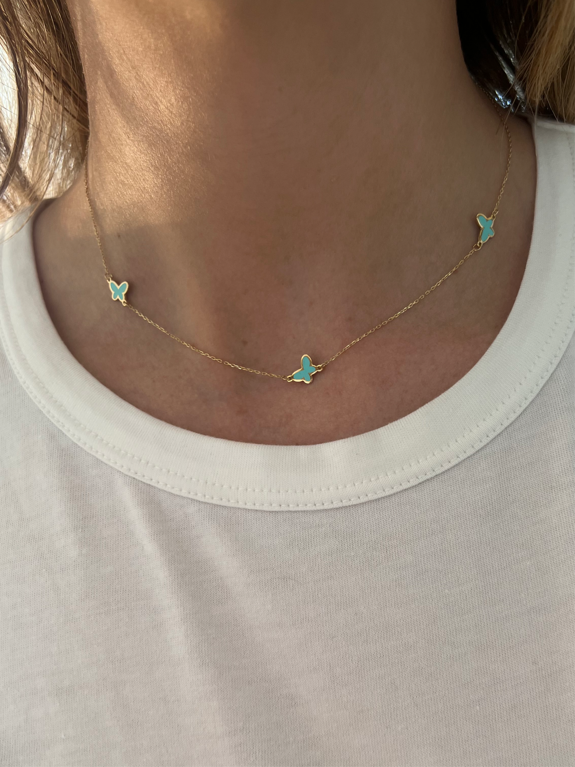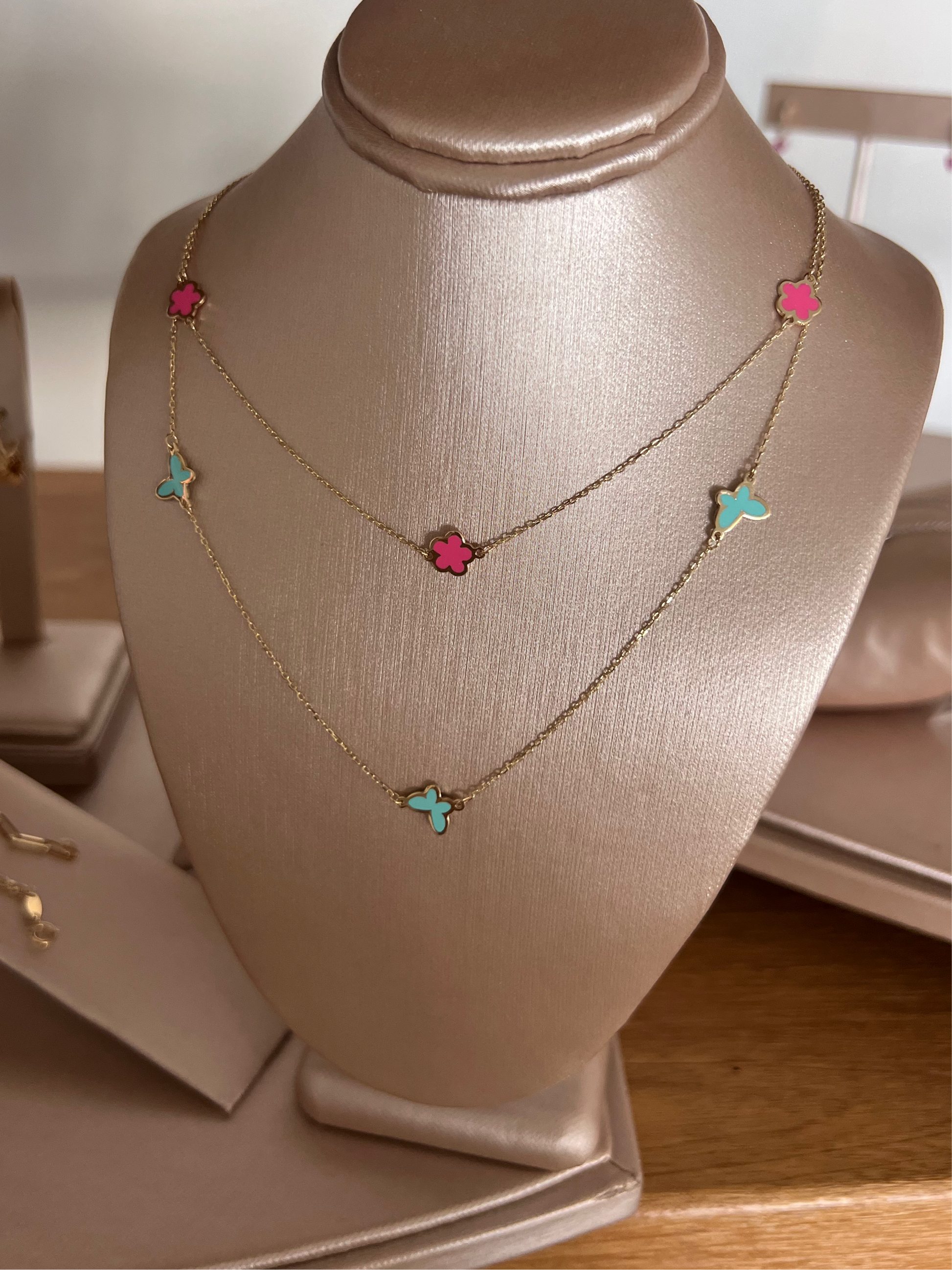 Collares de oro de 14k con mariposas esmaltadas azules o flores esmaltadas rosas