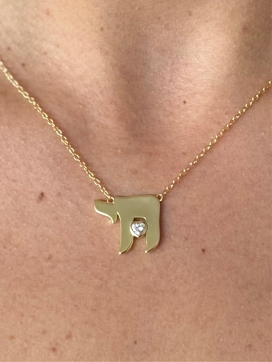 Collar de plata con baño de oro de jai con un corazón de cz al centro