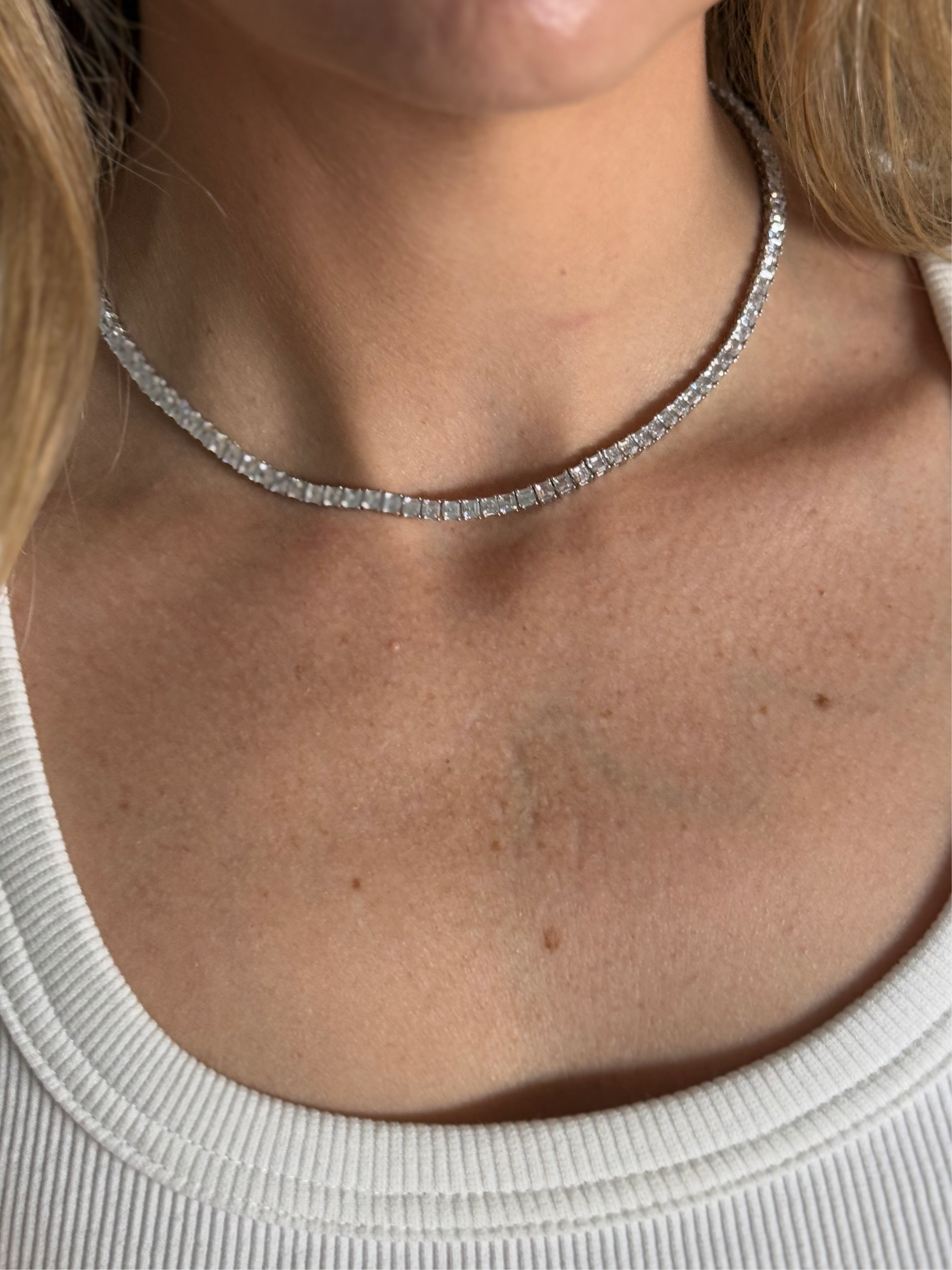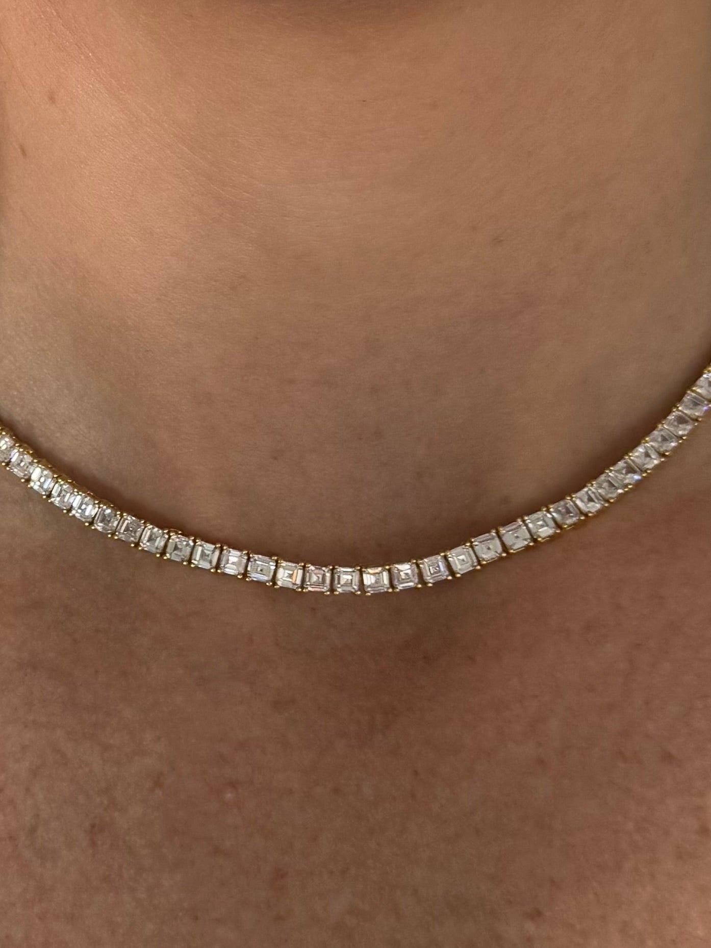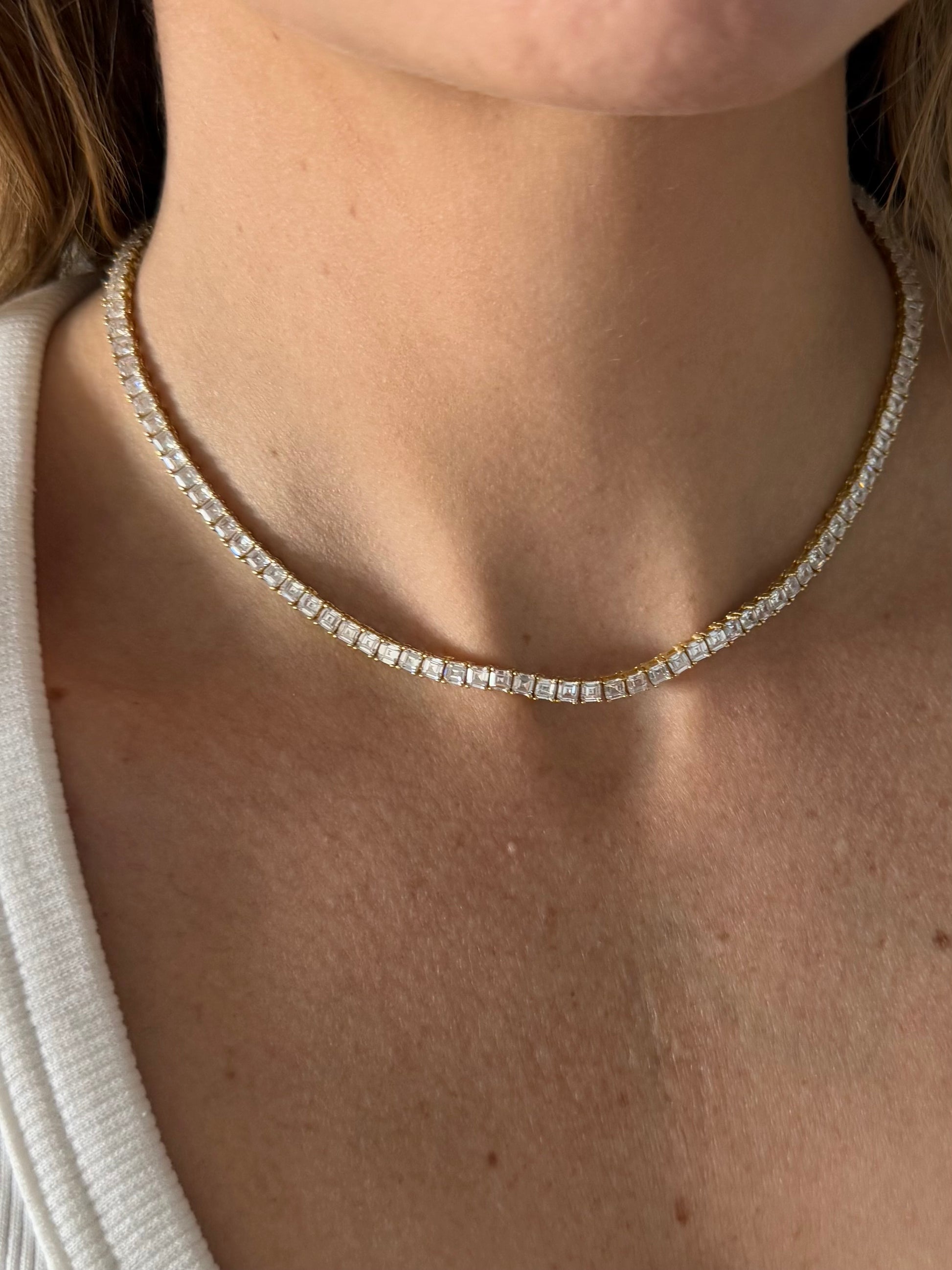 Collar tennis de zirconias en corte princesa. Baño de oro de 14k sobre plata