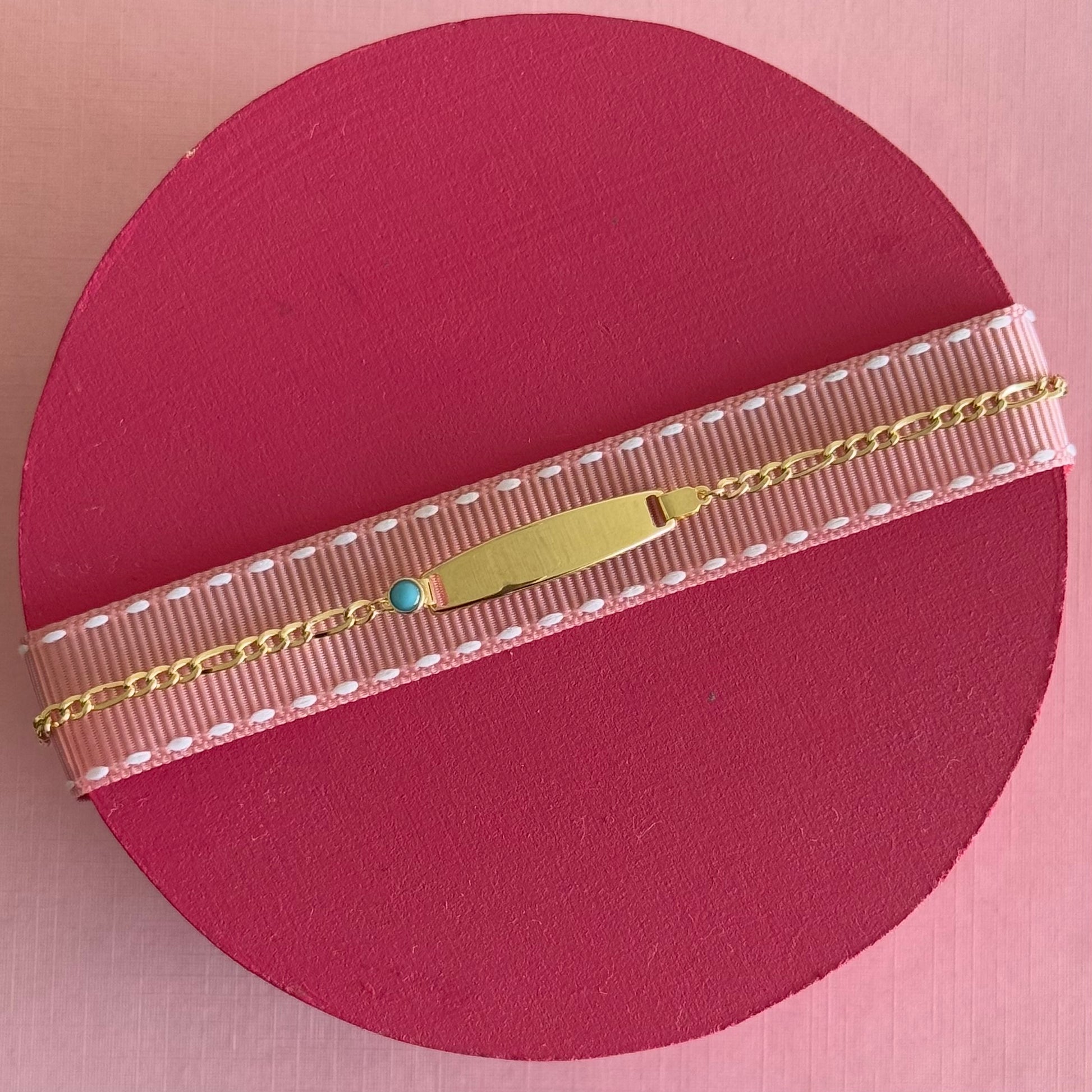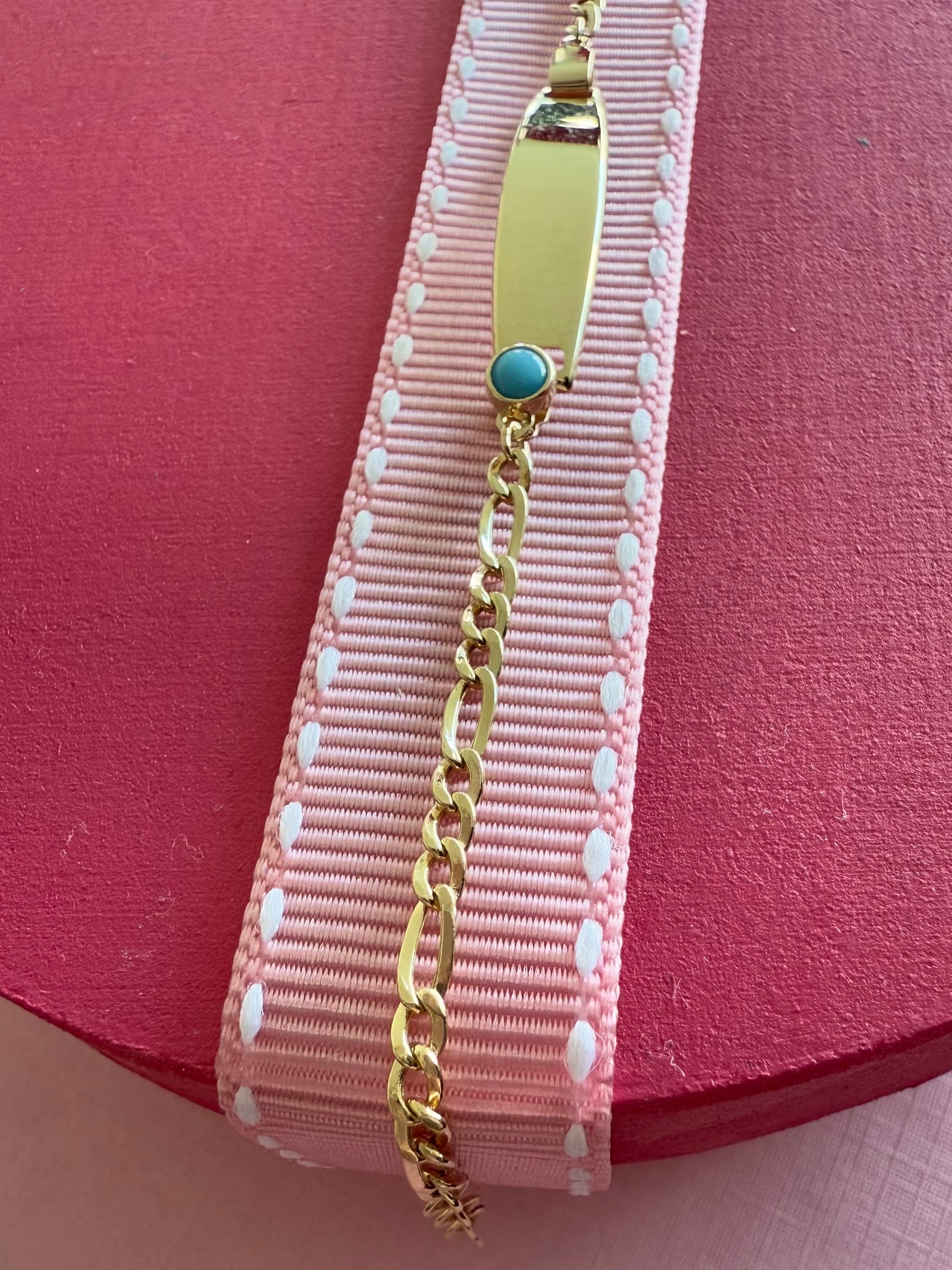 Esclava de oro de 14k con cadena fígaro y turquesa