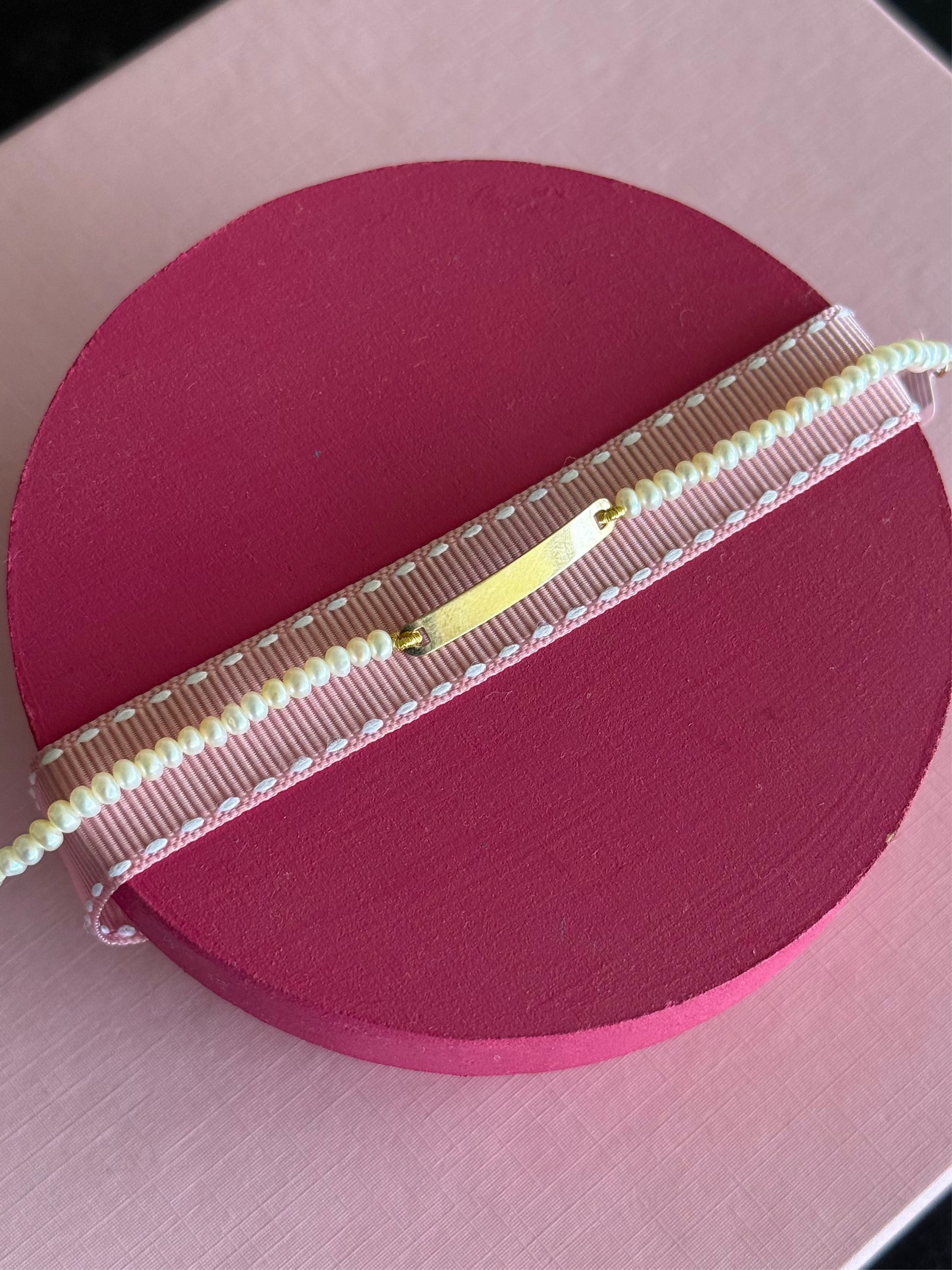 Escalaba de perlas naturales cultivadas de 3mm con una placa gravable de oro de 14k de 2.5cm
