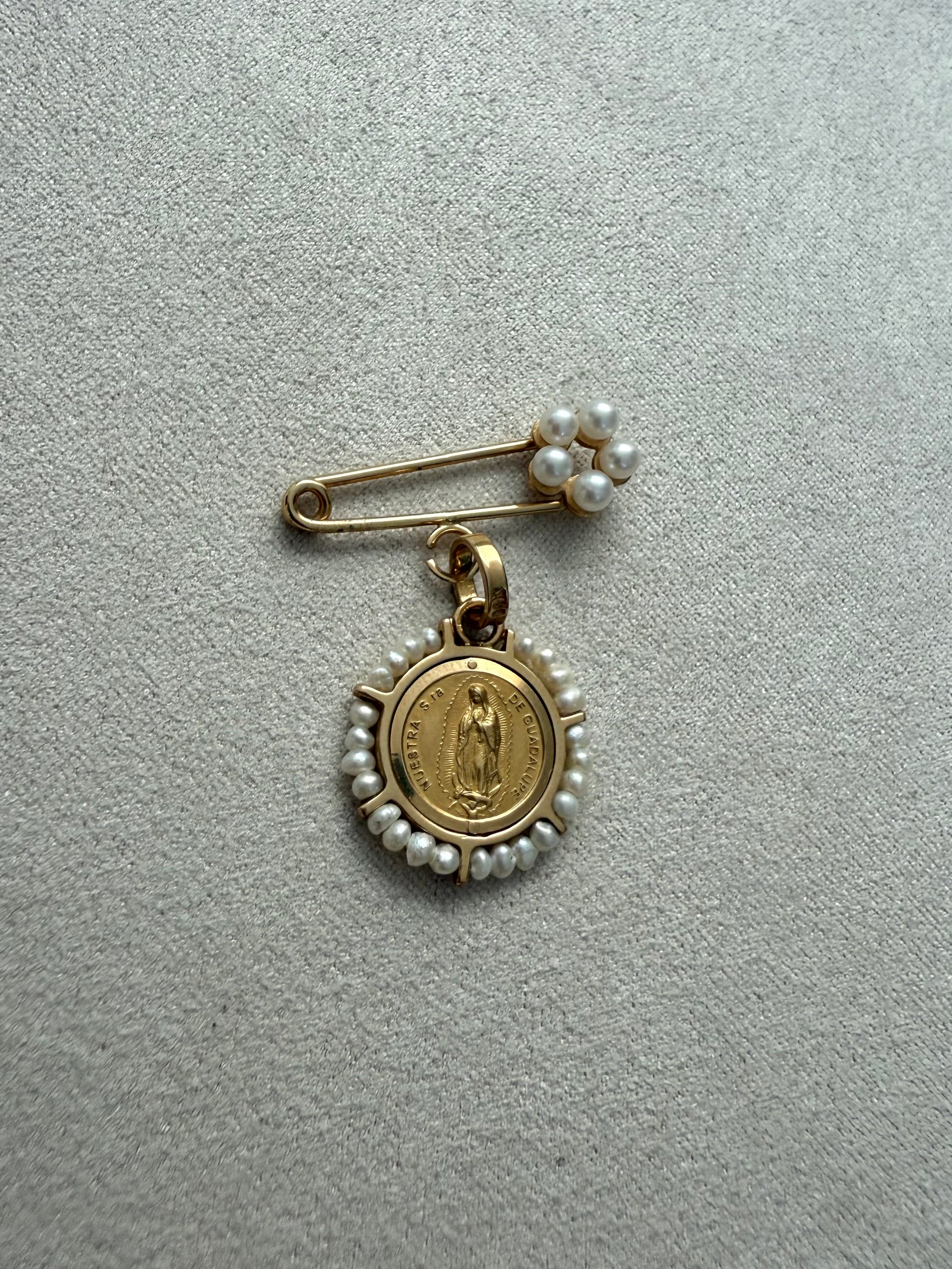 Pin / segurito de oro de 14k con una flor de perlas naturales cultivadas