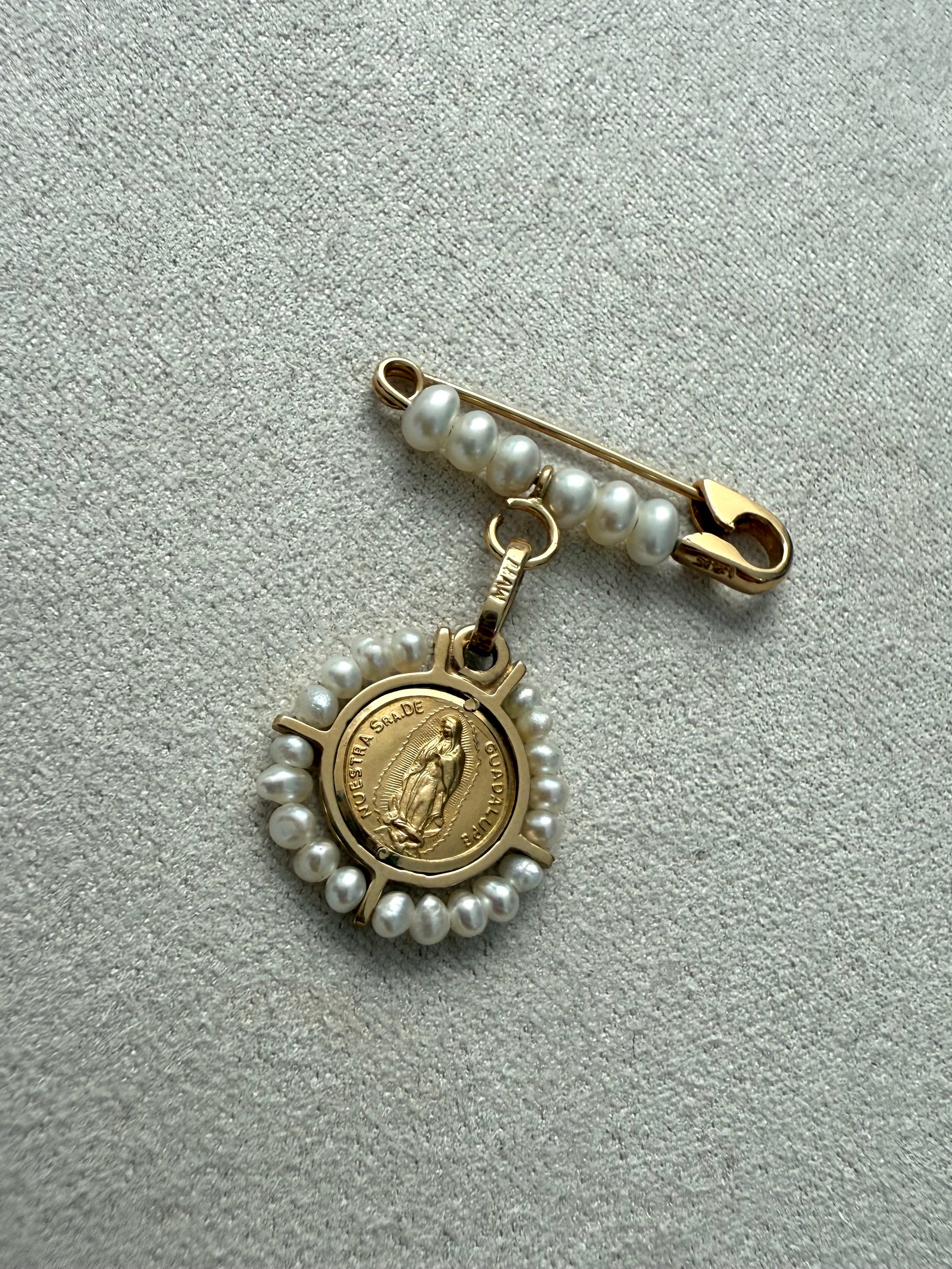 Pin / segurito de oro de 14k con perlas naturales cultivadas