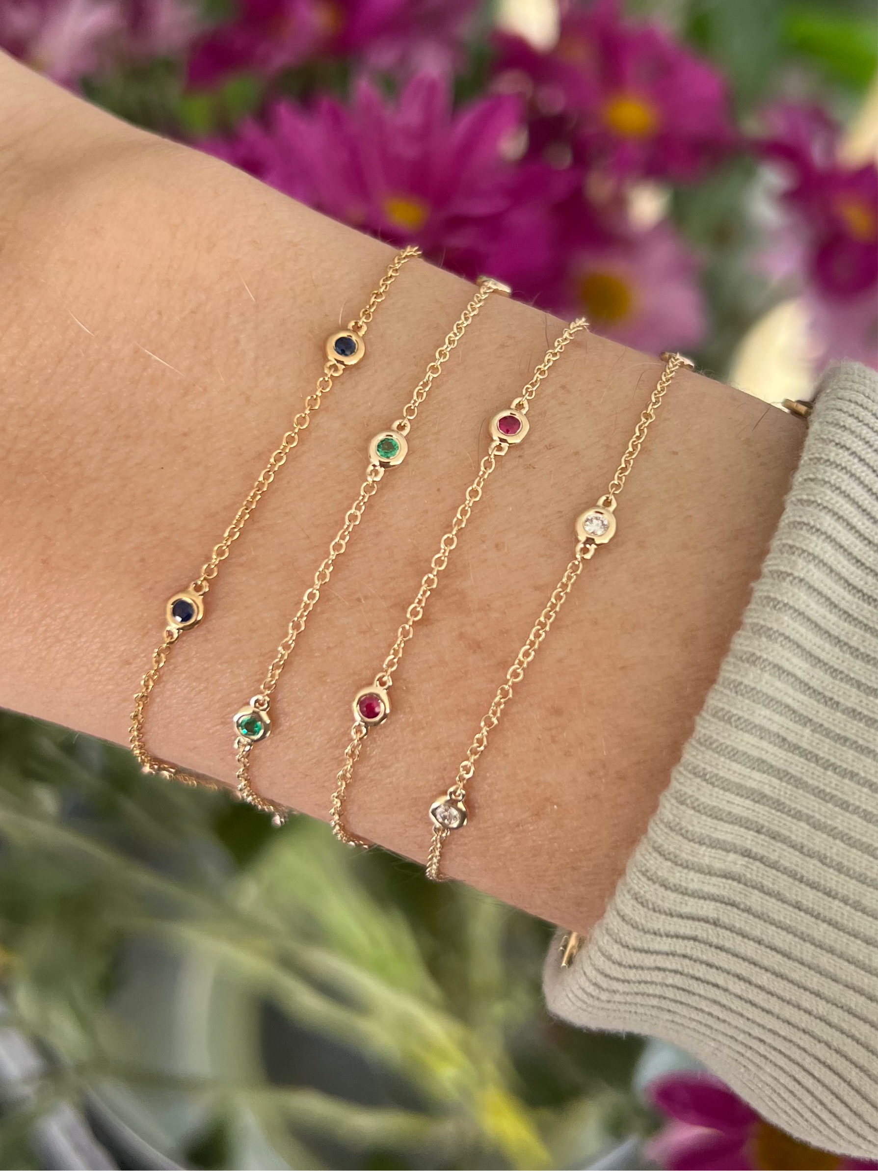 Pulsera en oro de 14k con 5 diamantes con bisel