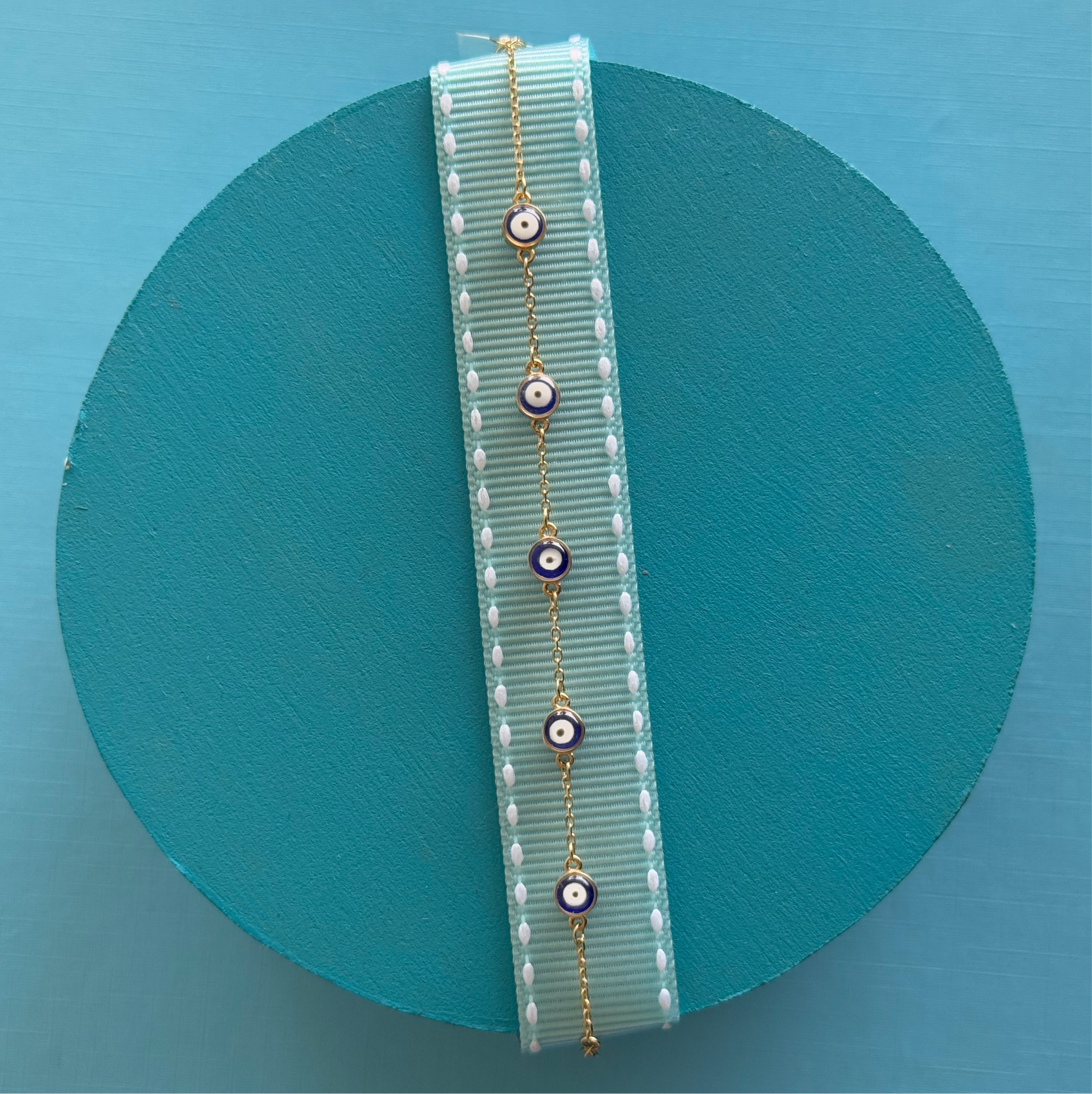Pulsera de oro de 14k de ojitos turcos azul marino