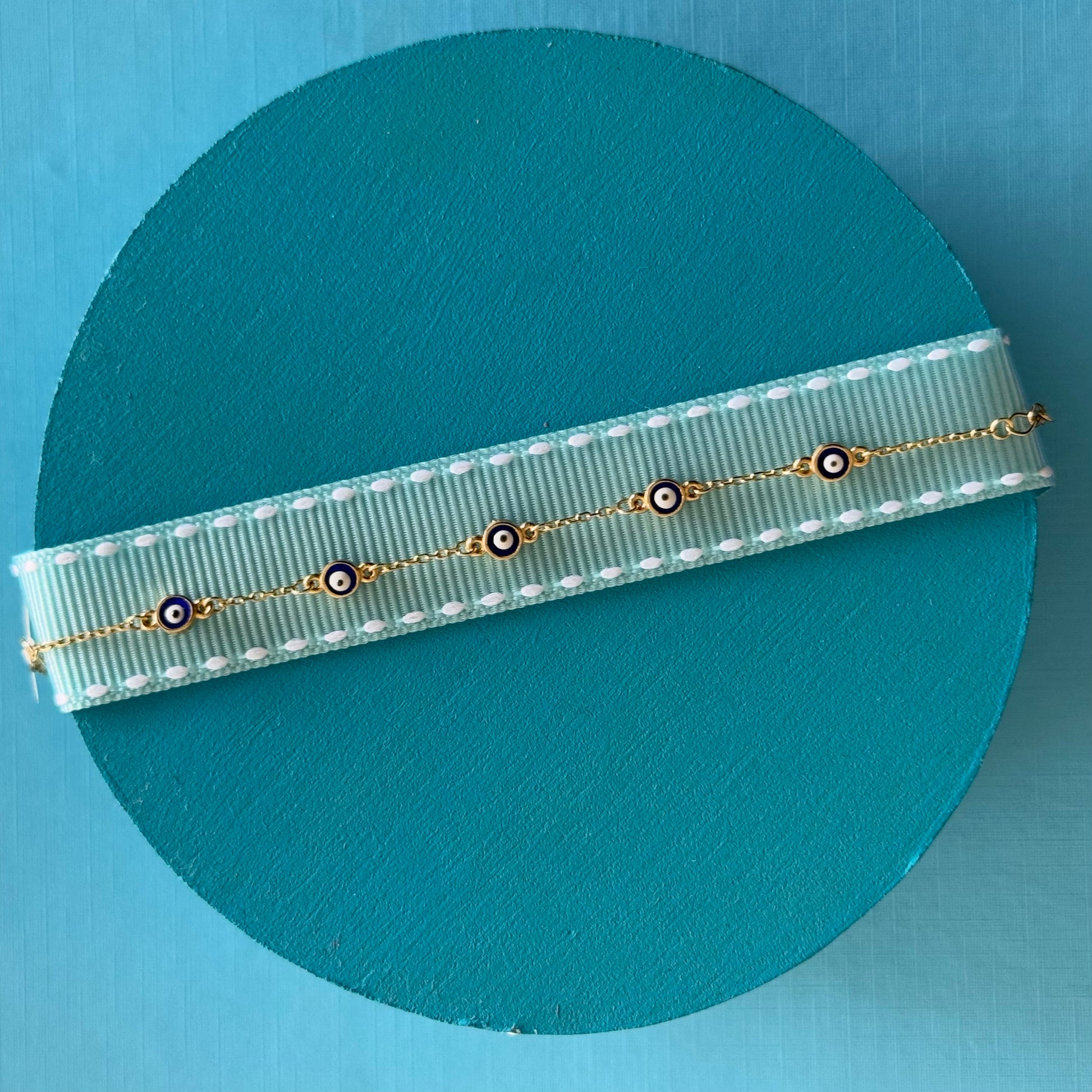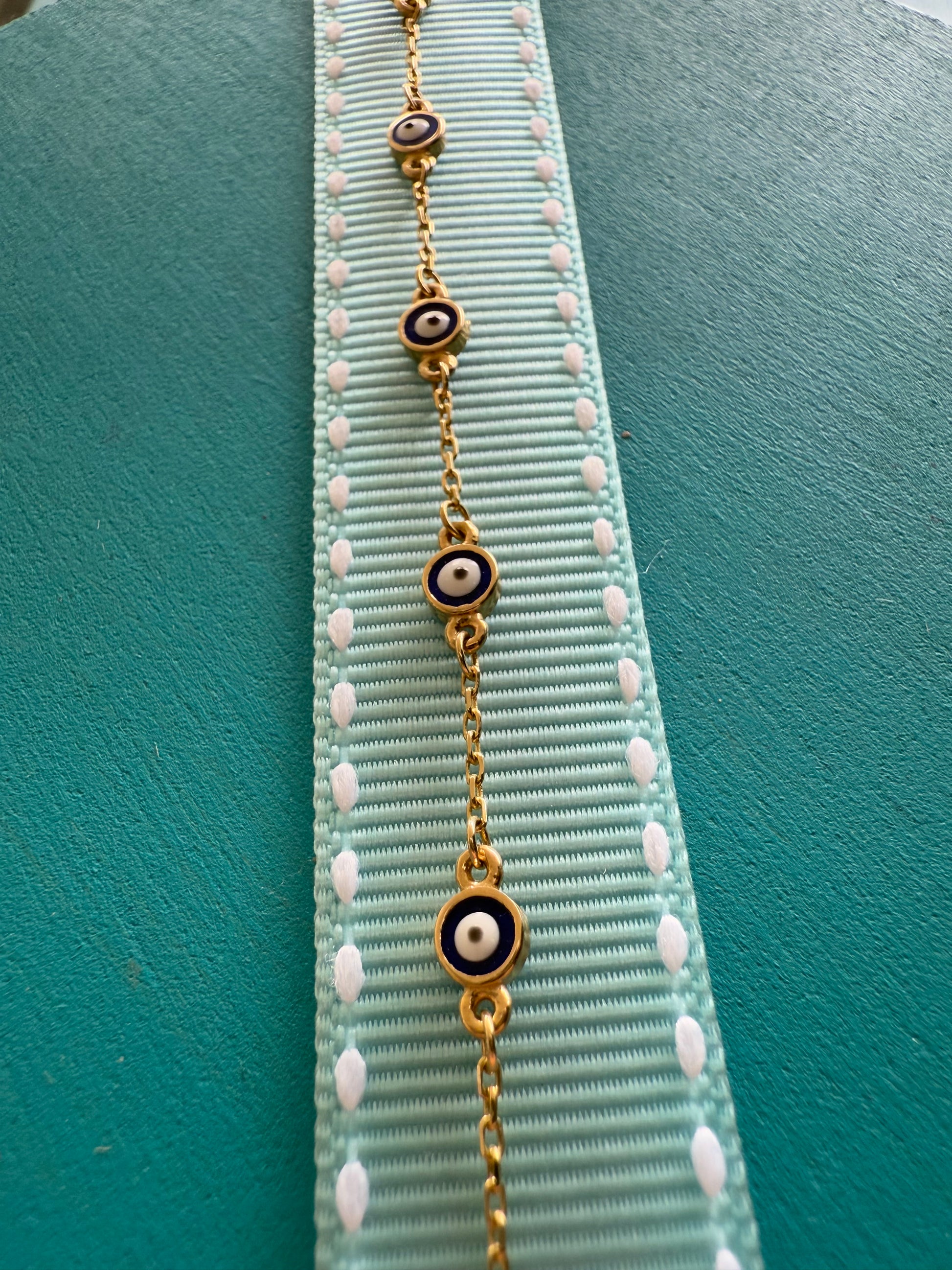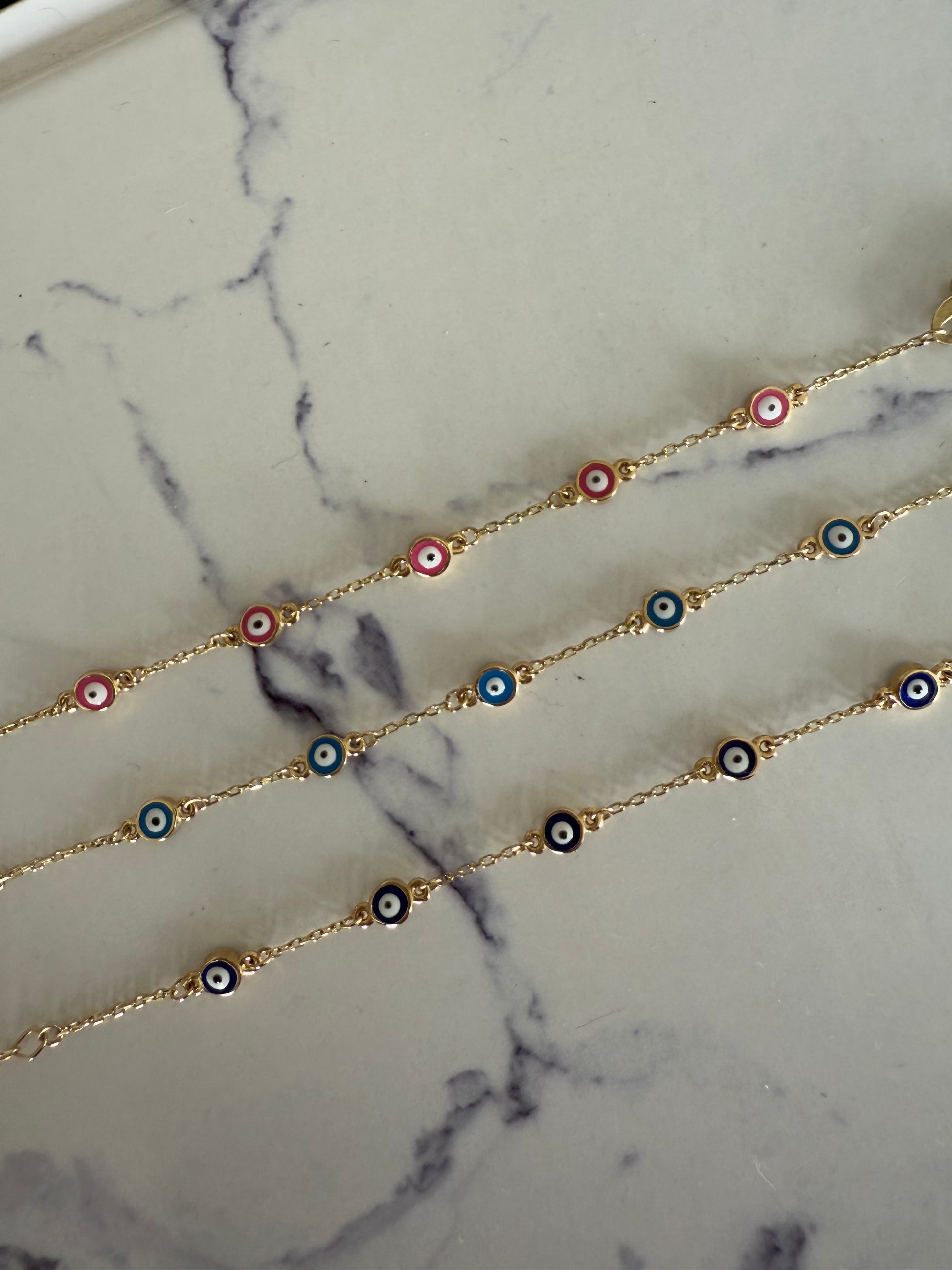 Pulsera en oro de 14k de ojitos turcos esmaltados