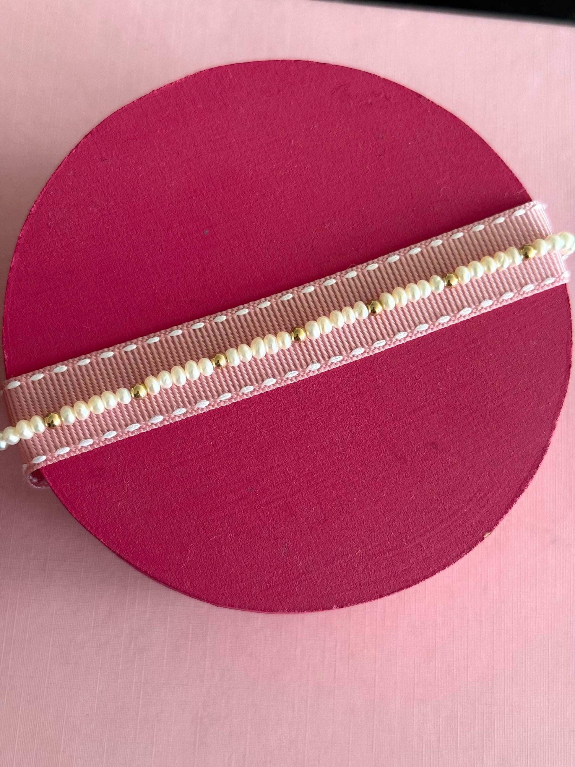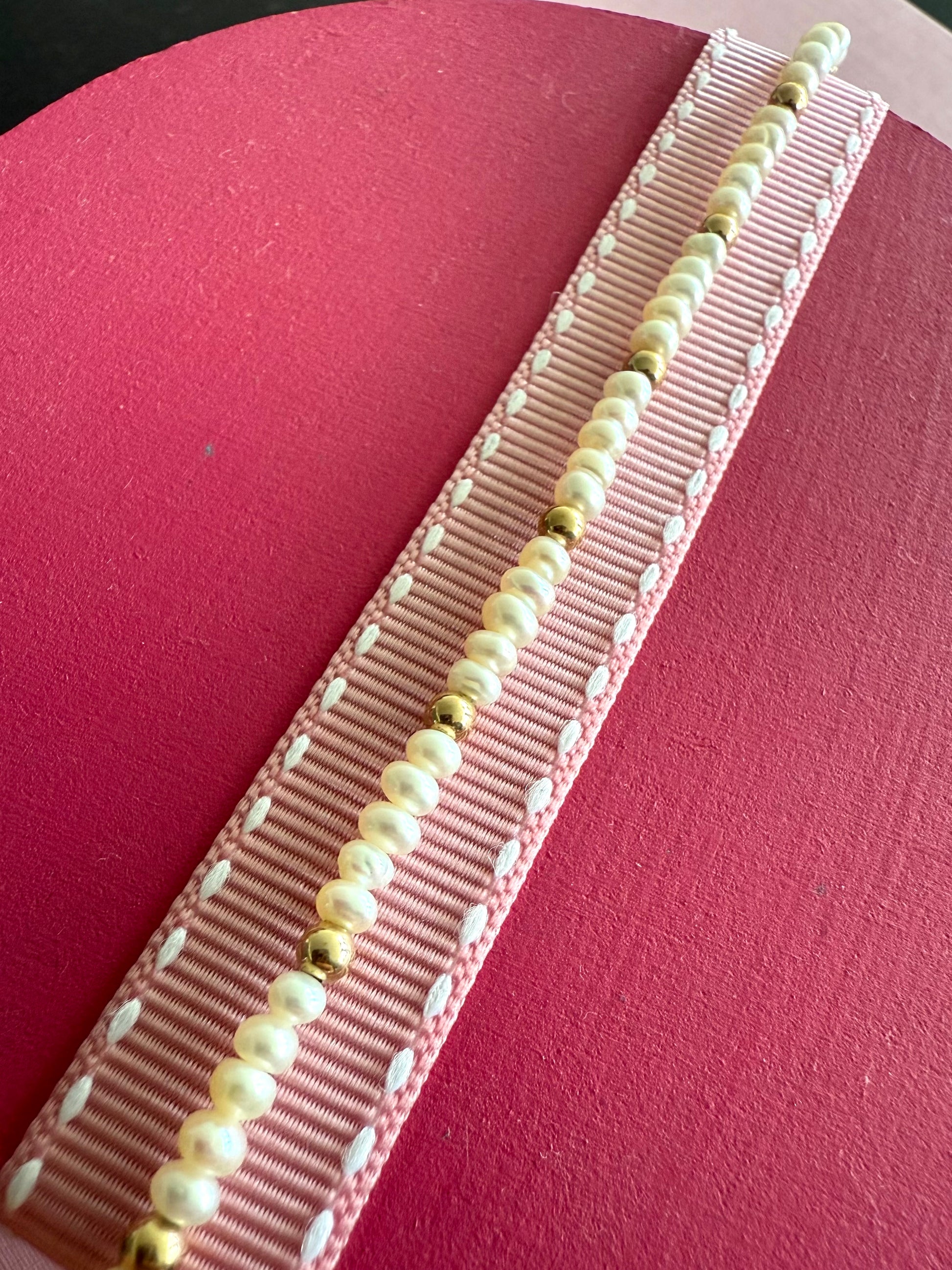Pulsera de perlas naturales y bolitas de oro de 14k