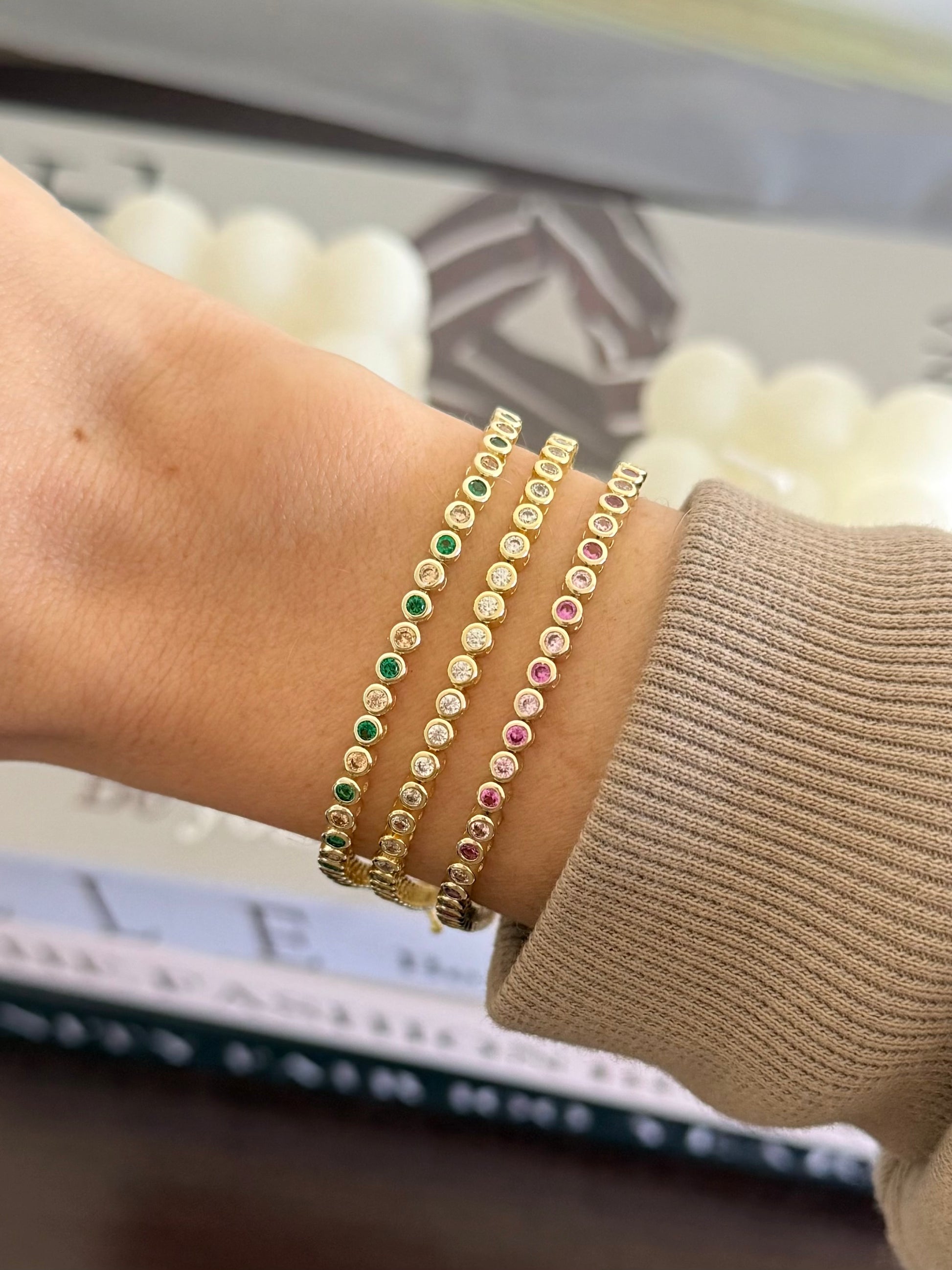 pulsera tennis en baño de oro con zirconias verdes y amarillas