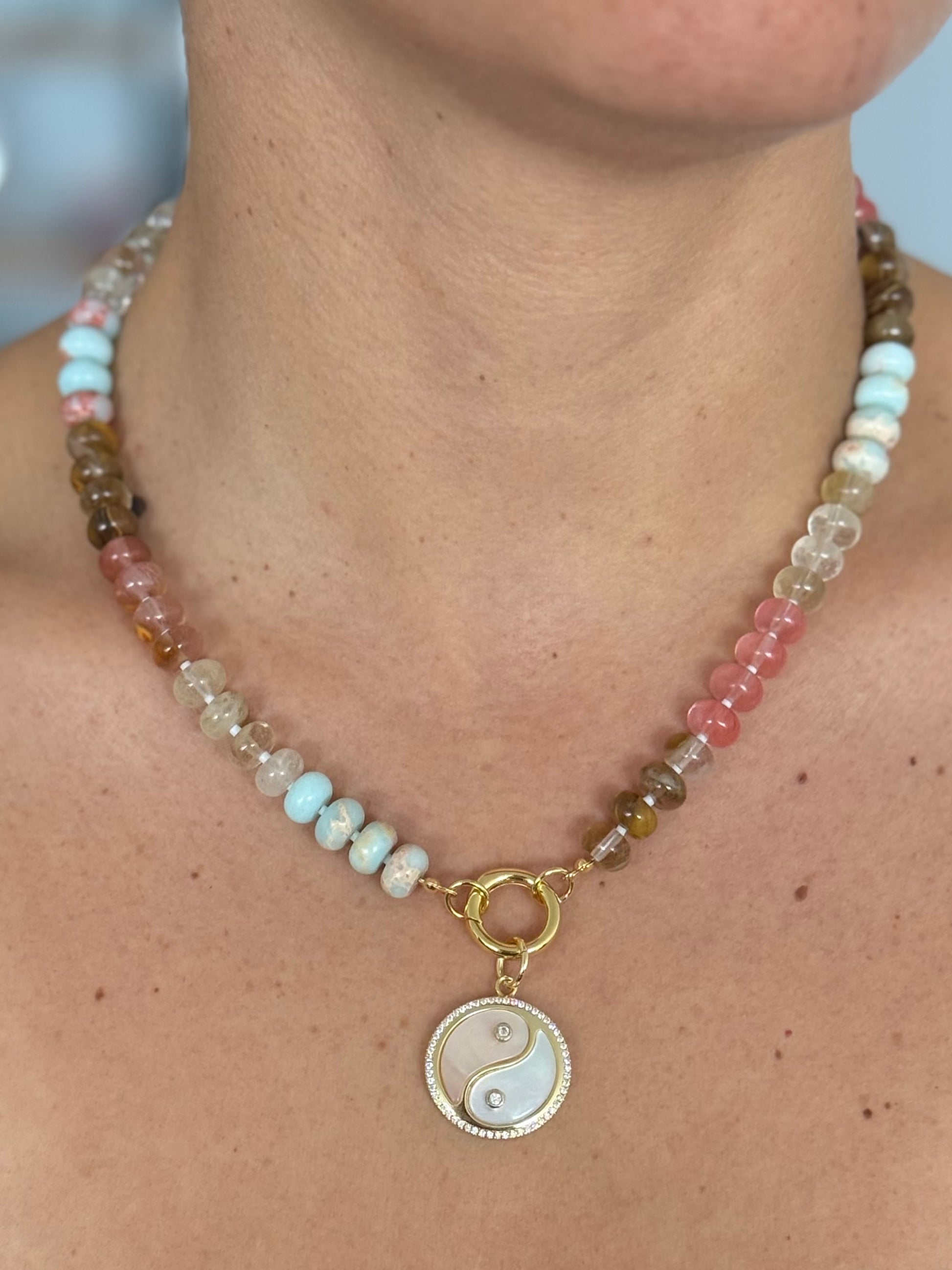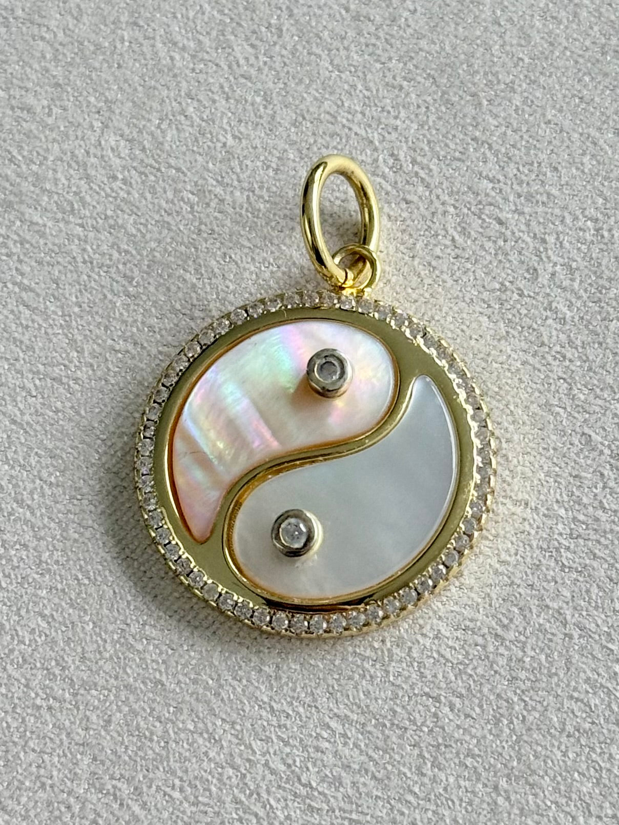 Charm de ying yang con madre perla rosa y blanca y zirconias